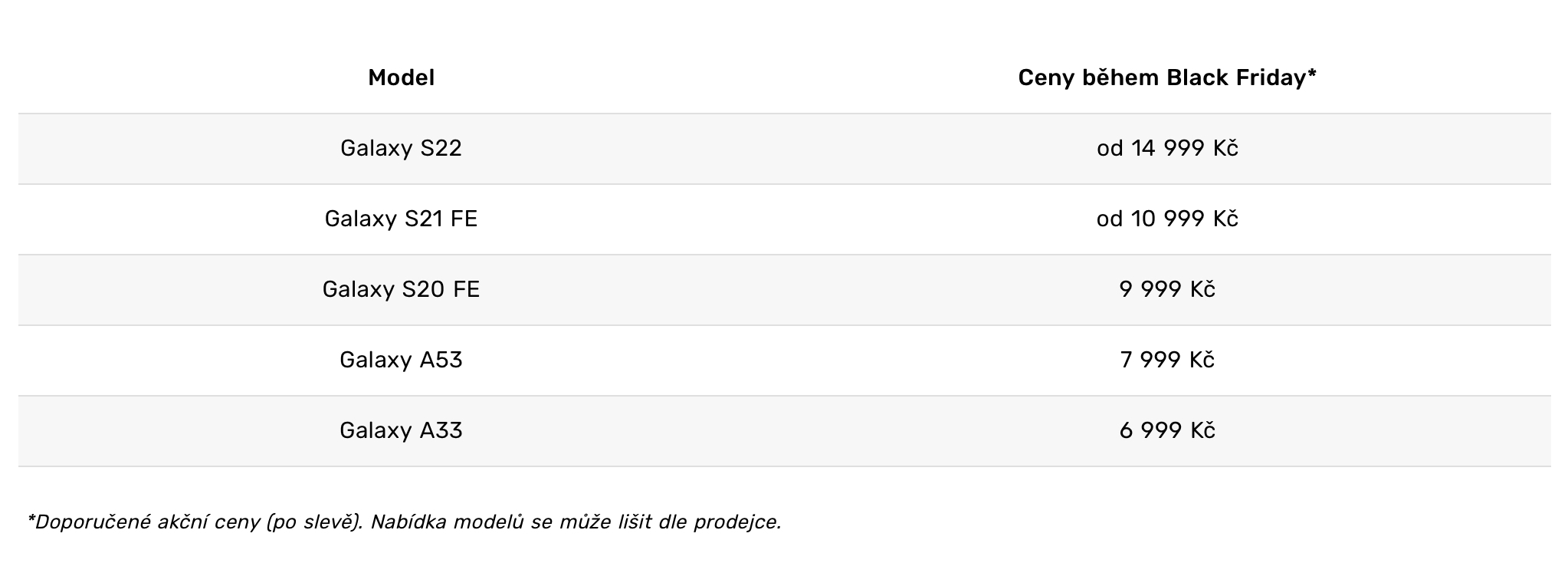 A v neposlední řadě se můžete těšit i na úspěšnou sérii telefonů Samsung Galaxy A53 a A33. Díky bezkonkurenčním slevám je během listopadu seženete už od 6 999 Kč.