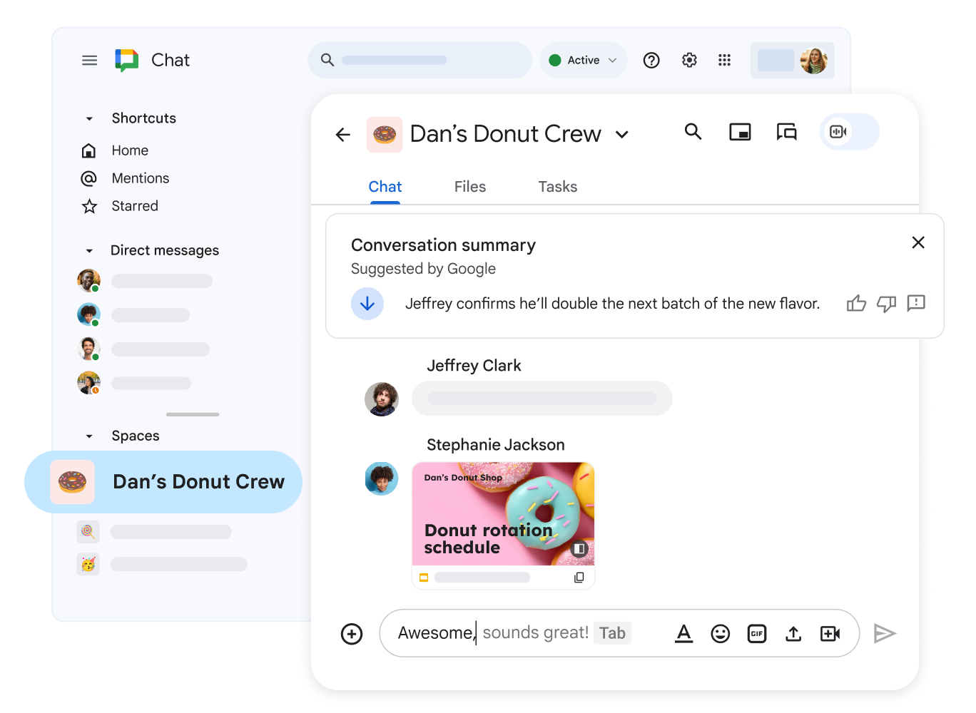 Možnost shrnutí zpráv nabízí i další produkty z dílny Googlu. Zmíněné se však nejvíce blíží funkce rekapitulace Spaces Google Chat, která uživatelům napomáhá dohnat tempo skupinové konverzace.