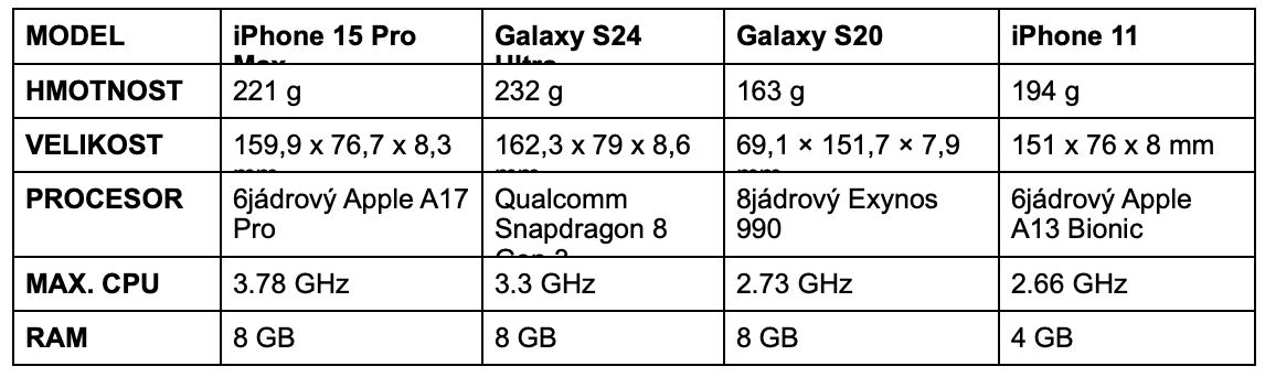 Apple nebo android bude uživatele zajímat také z pohledu samotného výkonu. Oba telefony mají srovnatelné parametry a jako vždy je nutné uvést, že se mohou různit podle vybraného konkrétního modelu, které obě značky stále zdokonalují. Jak již bylo zmíněno, Samsung se zaměřuje na lehké kovy jako jsou hliník ve srovnání s titanem, kterého široce využívá Apple – telefony iPhone vs Samsung se tak lehce různí ve své hmotnosti. Některé rozdíly najdeme také ve výkonech telefonu. Podívejme se nyní na srovnání dvou oblíbených modelů pro Samsung vs Apple: