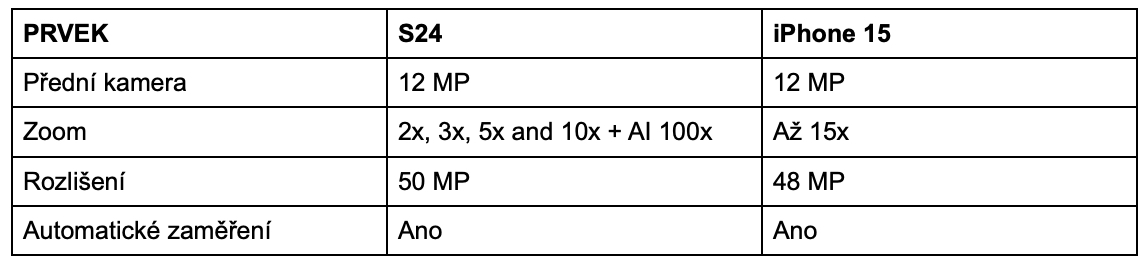 Z pohledu kvality pořizování fotek a videí pro iPhone nebo Samsung neexistuje jasného vítěze. Zatímco první zmiňovaný předčí svým zoomem na nových modelech a chytrými funkcemi, Apple má vysoce kvalitní typ fotoaparátů, který dokonce posloužil také pro natáčení Oscarového snímku. Mezi porovnání dvou modelů můžeme vytipovat:
