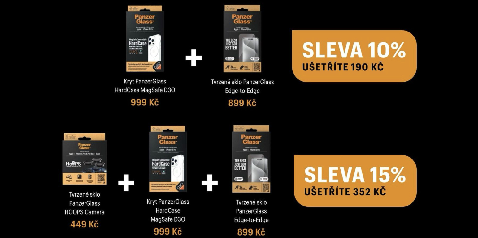 U Mobil Pohotovosti teď můžete parádně ušetřit, a to až 15 % při nákupu dvou a více produktů PanzerGlass. Sklo tak můžete doplnit třeba promakaným krytem řady Care, který dokáže odolat pádu z až 4,8m výšky a poskytuje také roční záruku proti žloutnutí. Velmi oblíbenými se stávají také ochranné kroužky Hoops určené na zadní čočky foťáku. Pro získání slevy použijte v košíku kód “pg”. Kompletní informace najdete na mp.cz/panzerglass.