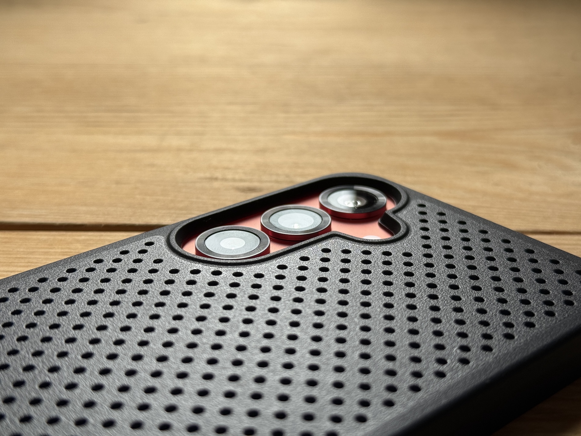 Hlavním prvkem krytu je, že se snaží odvádět teplo, díky čemuž udržuje telefon co nejchladnější to jde. Tím mimochodem také chrání vaši baterii a zabraňuje přehřátí telefonu a jeho vypnutí. Vděčí za to speciální grafenové textuře a samozřejmě tomu, že je „děravý“ jako řešeto. Teplo tak jednoduše má kudy od telefonu odcházet a nezůstává v něm „uvězněno“.