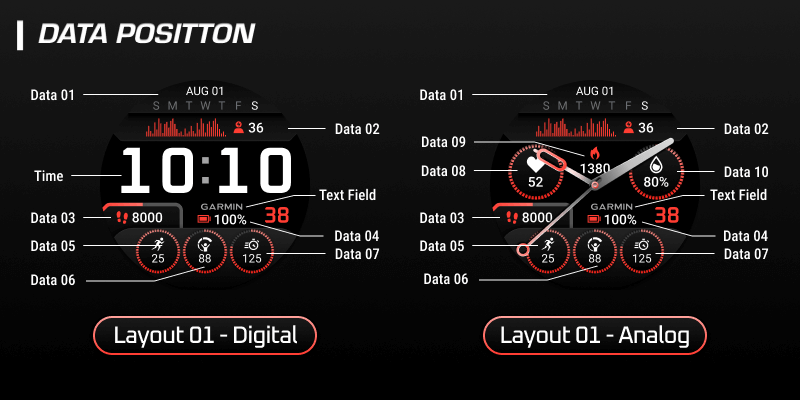 Ciferník Garmin All Stars – Venu X1 Snapshot plně využívá čtvercového displeje hodinek, na kterých vyšel, a skládá bloky dat do čistého mřížkového uspořádání. Nicméně vy si jej můžete nainstalovat klidně i na modely s kruhovými ciferníky, kterým je uzpůsoben.