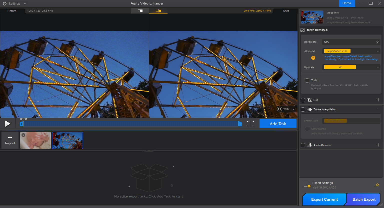 Navzdory všem těmto technologickým schopnostem je používání Aiarty až překvapivě jednoduché. Není potřeba žádné studování manuálů ani nastavování složitých parametrů. Stačí video otevřít, vybrat požadovaný režim vylepšení, nastavit kvalitu výstupu – třeba rovnou ve 4K s vysokým FPS – a nechat software pracovat. Zvládá i dávkové zpracování, takže si poradí i s větším objemem práce najednou. Výsledkem jsou záběry, které vypadají ostřeji, čistěji, realističtěji a často působí až neuvěřitelně v porovnání s tím, jak vypadaly původně.