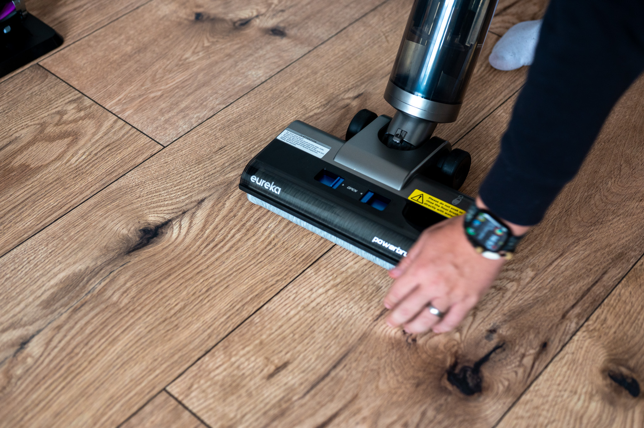 Když domů dorazíte s mokrými podrážkami, nebo máte děti, které nanosí z venku břečku, pak oceníte vytírací schopnosti. Kartáč totiž nejen vysává, ale i zvlhčuje a drhne podlahu najednou. A to zvládá opravdu parádně. Díky rotujícím „mopům“ proti sobě je totiž podlaha velmi precizně umyta a to i v případě, že je již opravdu špinavá. Jasně, u zaschlých stop od bláta bylo někdy potřeba přejet dvakrát, ale výsledek byl pokaždé perfektní – tedy podlaha čistá, žádné šmouhy, žádné zbytky. Super je navíc to, že vysavač podlahu nějak přehnaně nenavlhčí, díky čemuž tak jednak nehrozí, že by vám ji zničil a jednak máte jistotu, že rychle uschne.
