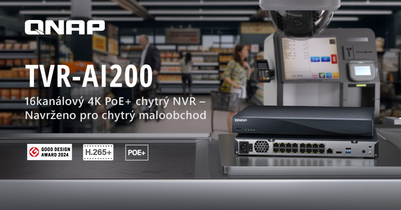 Tisková zpráva: Společnost QNAP® Systems, Inc., přední inovátor v oblasti počítačových, síťových a úložných řešení, uvedla na trh nový 16kanálový chytrý síťový rekordér NVR s PoE+ TVR-AI200. Podporuje dozorování pomocí obrazu a zvuku v reálném čase, vysoce kvalitní záznam a lze jej umístit na pracovní stůl nebo namontovat do racku. Díky síťovému připojení PoE+ a funkcím plug-and-play TVR-AI200 nejen zjednodušuje kabeláž a instalaci kamer, ale také umožňuje uživatelům dokončit offline nastavení a zahájit nahrávání během 10 minut. TVR-AI200 kombinuje bezpečnost izolované sítě s flexibilní správou a volitelným připojením k síti WAN. Ve spojení s analýzou videí pomocí umělé inteligence a možnostmi centralizované správy poskytuje vysoce účinné, spolehlivé a nákladově efektivní řešení dozorování pro chytré maloobchodní a komerční prostředí.