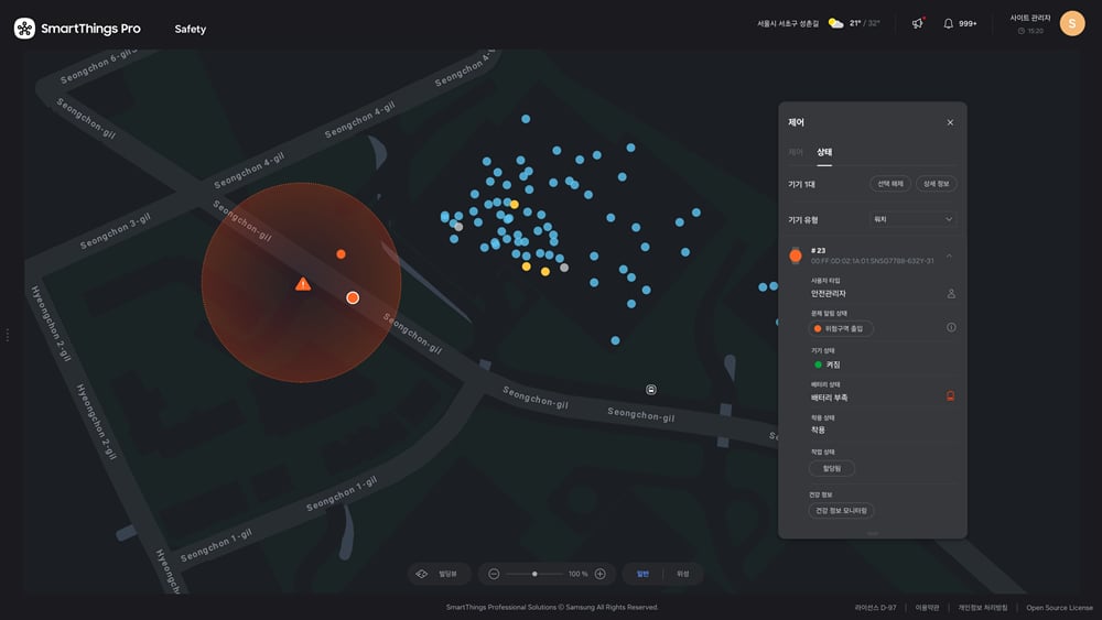 SmartThings Pro Safety Management má ale i další aspekty. Dokáže třeba ve velkých vedrech nebo v obdobích silných dešťů upozornit na možná rizika. Připomíná také zdravotní prohlídky a vedení může tímto způsobem informovat třeba o plánovaném školení BOZP.
