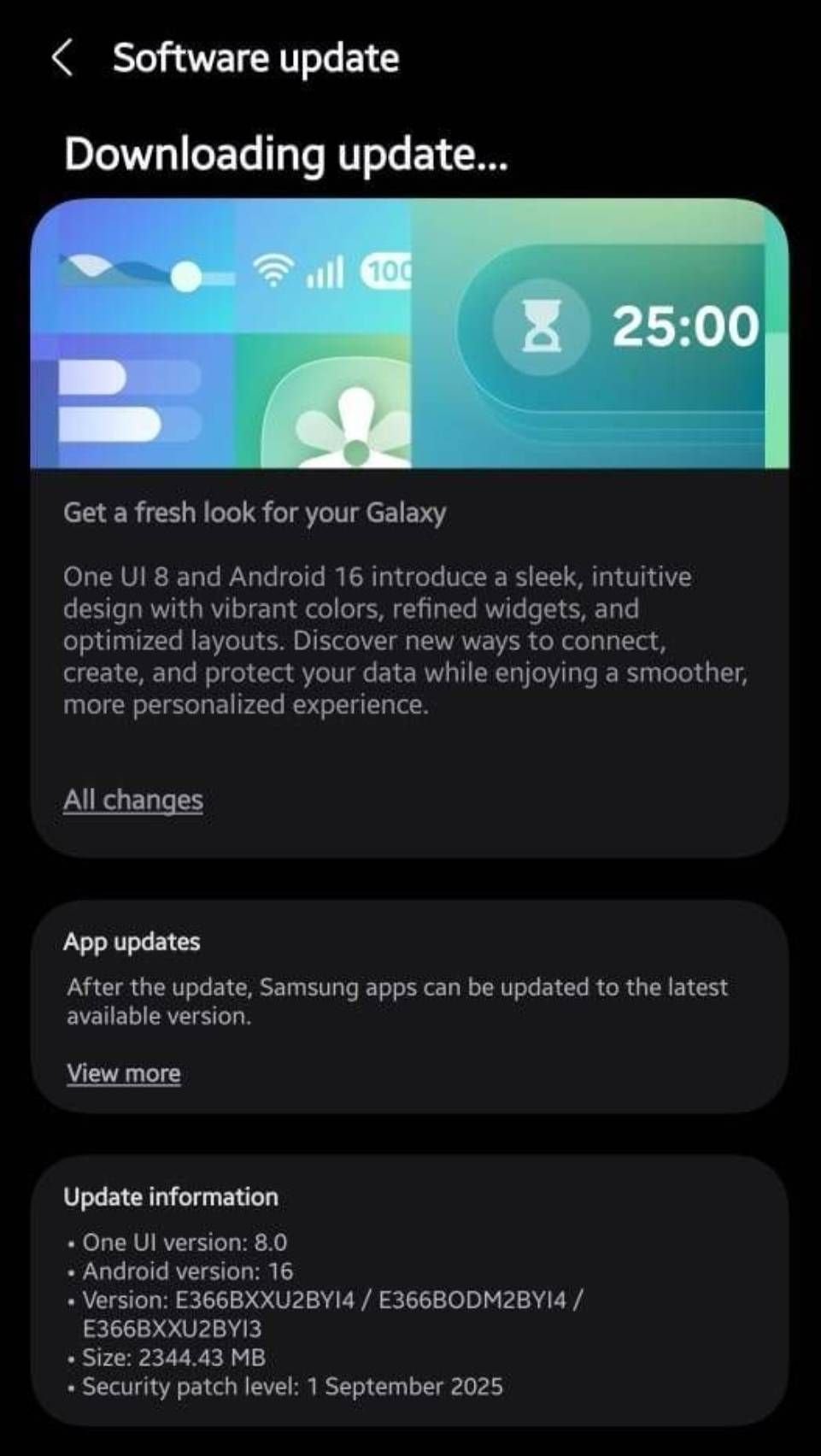 Samsung začal vydávat aktualizaci One UI 8 i pro modely Galaxy F36 a M36. Aktualizace pro první model má velikost 2 344,43 MB a obsahuje firmware verze E366BXXU2BYI4. Aktualizace pro druhý model má velikost 2 359,37 MB a obsahuje firmware verze M366BXXUZBYI3. Seznam zařízení, která na One UI 8 ještě čekají a mají na něho nárok, se tak pomalu ale jistě krátí. Mimochodem v Africe, Asii a Evropě už vychází i One UI 8 pro Galaxy A34. Nový software je dodáván s verzí firmwaru A346EXXUAEY17 a má velikost přibližně 2,3 GB. Místo záplaty z tohoto měsíce přináší ještě tu ze září 2025.