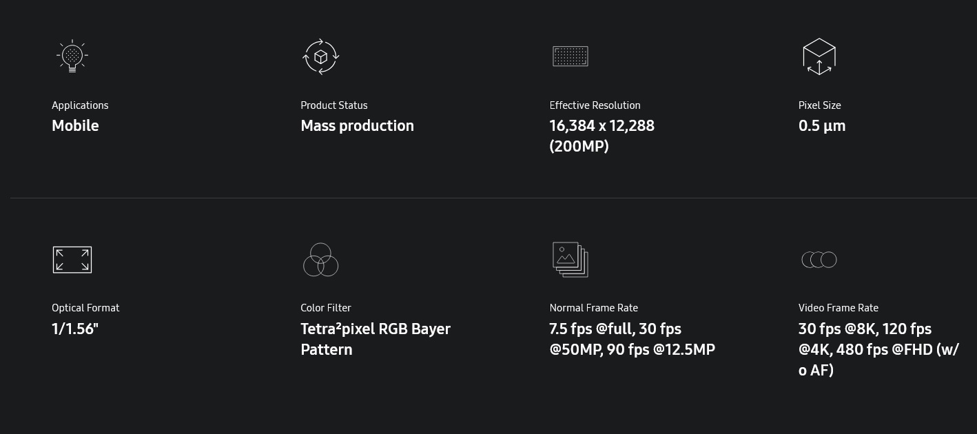 O tom, že Samsung připravuje zbrusu nový snímač s velmi vysokým rozlišením, se špitá už nějakou dobu. Teď ho konečně jihokorejský výrobce oficiálně ukázal. A rozhodně stojí za pozornost. ISOCELL HP5 nabízí famózní rozlišení 200 Mpx a má velikost 1/1,56 palce. Velikost pixelu je 0,5 µm. Ačkoliv je snímač menší než předchozí generace, dle vyjádření Samsungu to nijak nesníží kvalitu obrazu – spíš naopak.
