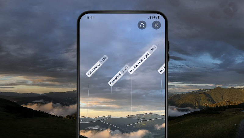 Vrcholy můžete objevovat i v rozšířené realitě. Názvy a nadmořskou výšku vrcholků ve vašem výhledu ukazuje funkce HorizontARv prémiové verzi aplikace. Pokud nemáte aktivní předplatné Premium, můžete si tuto funkci vyzkoušet bezplatně. V rámci zkušební verze je možné funkci spustit až 5×. Pro práci s HorizontAR je ale nutné připojení k internetu.
