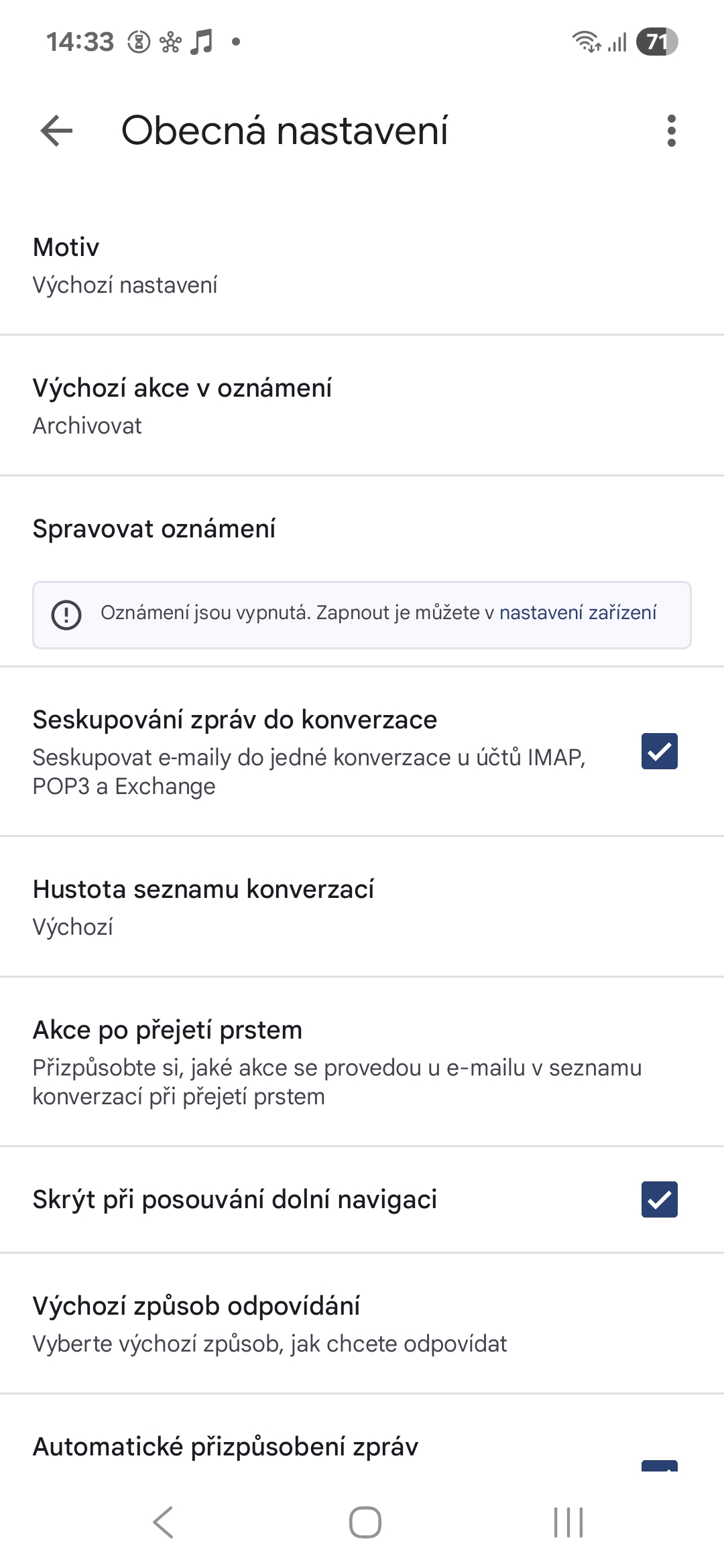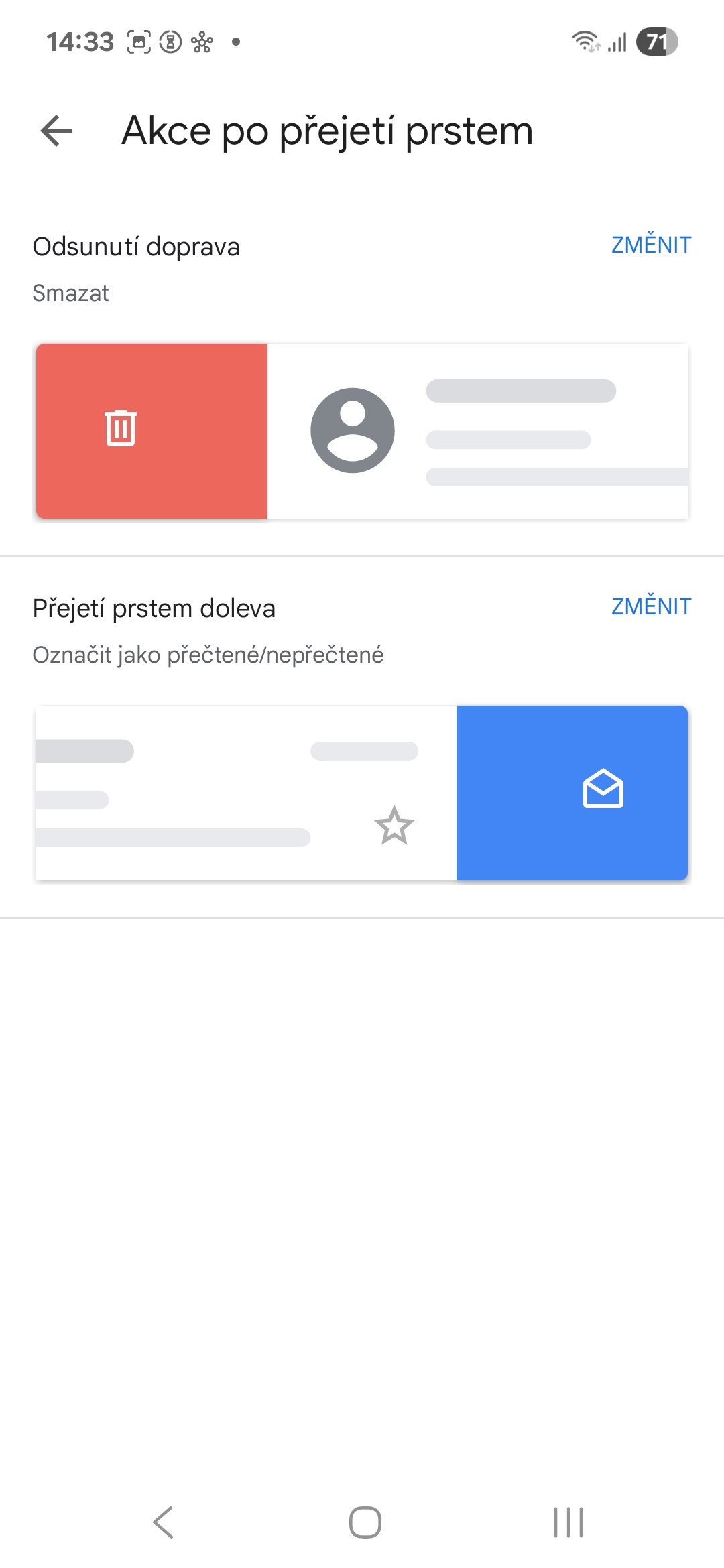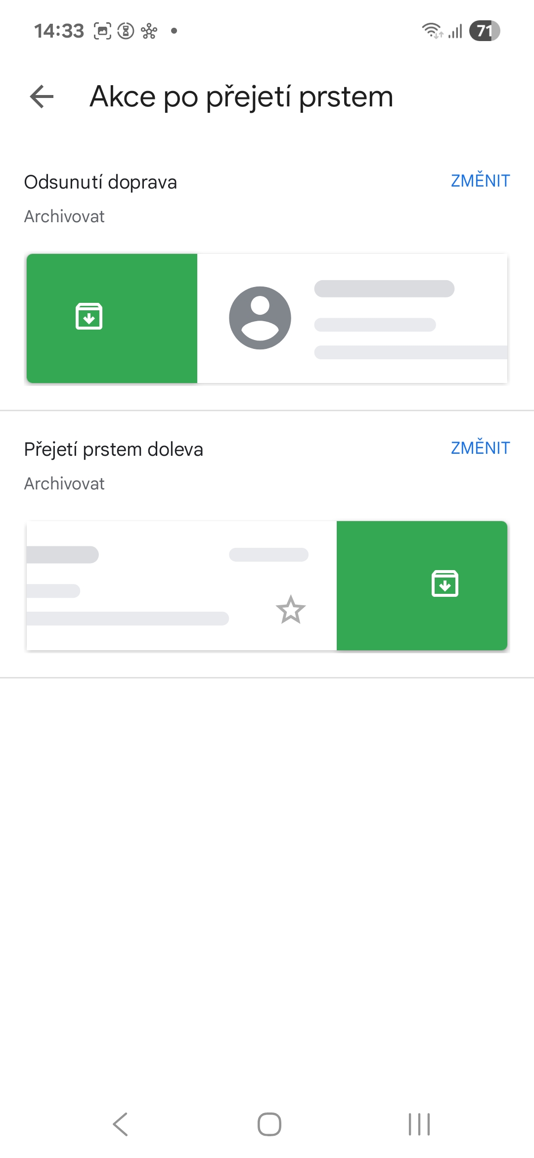 Než začnete platit, změňte raději své návyky. Pokud chcete skutečně uklidit a uvolnit místo, musíte začít mazat. V mobilní aplikaci Gmail se často stává, že výchozí gesto přejetí prstem nastavuje e-mail jako archivovaný. Přejděte do Nastavení -> Obecná nastavení -> Akce po přejetí prstem a nastavte jednu z akcí na Smazat.