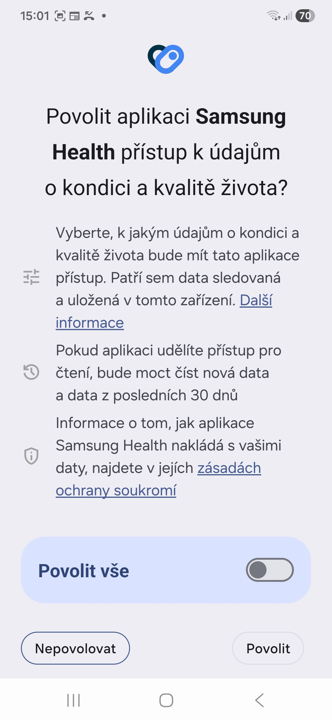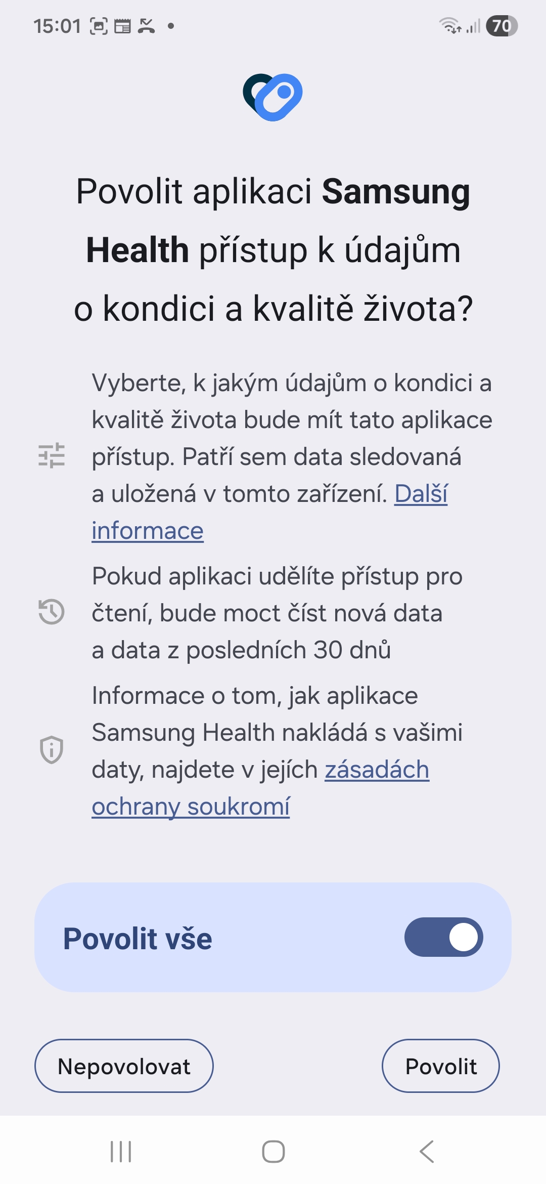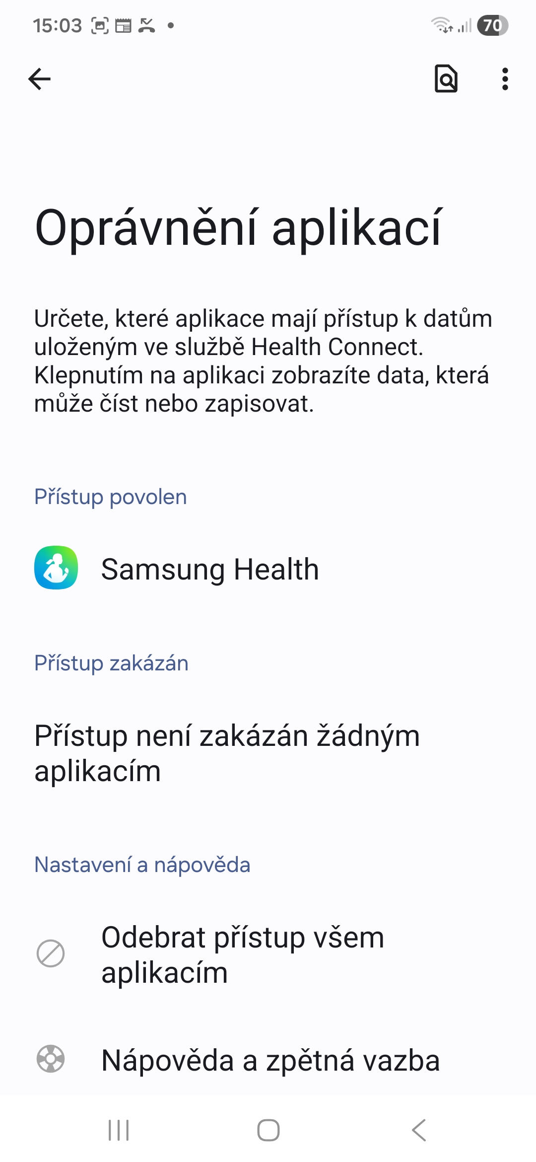 Pokud jste na svém telefonu Galaxy toto oznámení dosud neobdrželi, přejděte v aplikaci Samsung Health do Nastavení a v rámci sekce Připojené aplikace a služby vyberte možnost Health Connect. Dále postupujte podle pokynů na obrazovce.