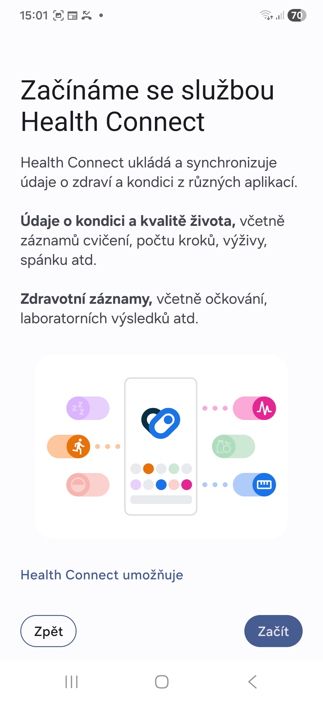 Služba Health Connect, spuštěná v roce 2022, funguje jako centrální uzel pro zdravotní data. Kombinuje data z několika aplikací pro zdraví a fitness, jako je Samsung Health či Fitbit, a zobrazuje je na jednom místě. To je užitečné zejména v případě, že vlastníte více zařízení od různých značek a chcete sledovat zdravotní data z nich na jednom místě.