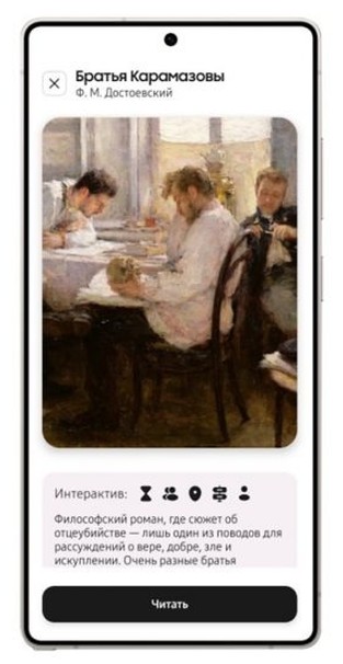 Samsung odhalil, že při tvorbě loga provedl studii rukopisů ruských klasiků. Velká písmena Ж a С, která se objevují v aktualizované verzi aplikace, jsou stylizována podle rukopisu spisovatele Lva Tolstého. Aktualizace také přidává dvě nové knihy – Tři sestry od Antona Pavloviče Čechova a Půlnoční kalendář od Nadjy Alexejevové.