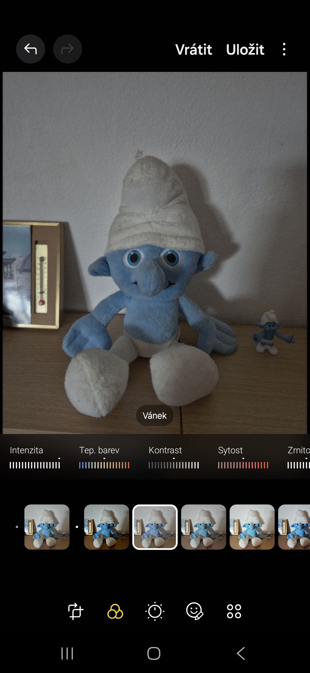 - Vyberte filtr, který chcete použít. Na výběr je mimo jiné Auto (automatický), Vánek, Křišťálový, Zakalený, Záře, Sluneční paprsky nebo (Od)stín. U každého kromě automatického si můžete upravit různé parametry, včetně intenzity, teploty barev (u Stínu a Odstínu tato možnost logicky chybí), kontrastu, sytosti a zrnitosti.