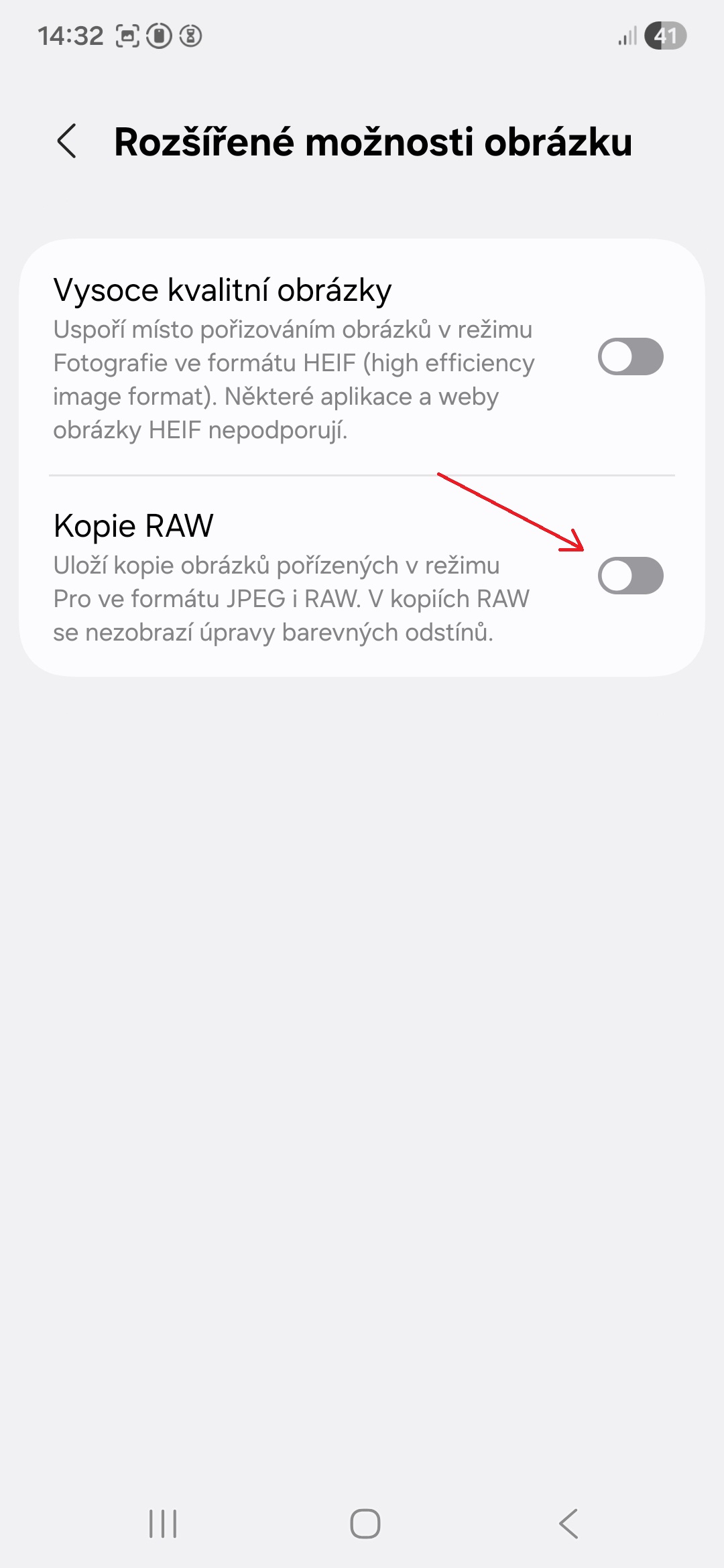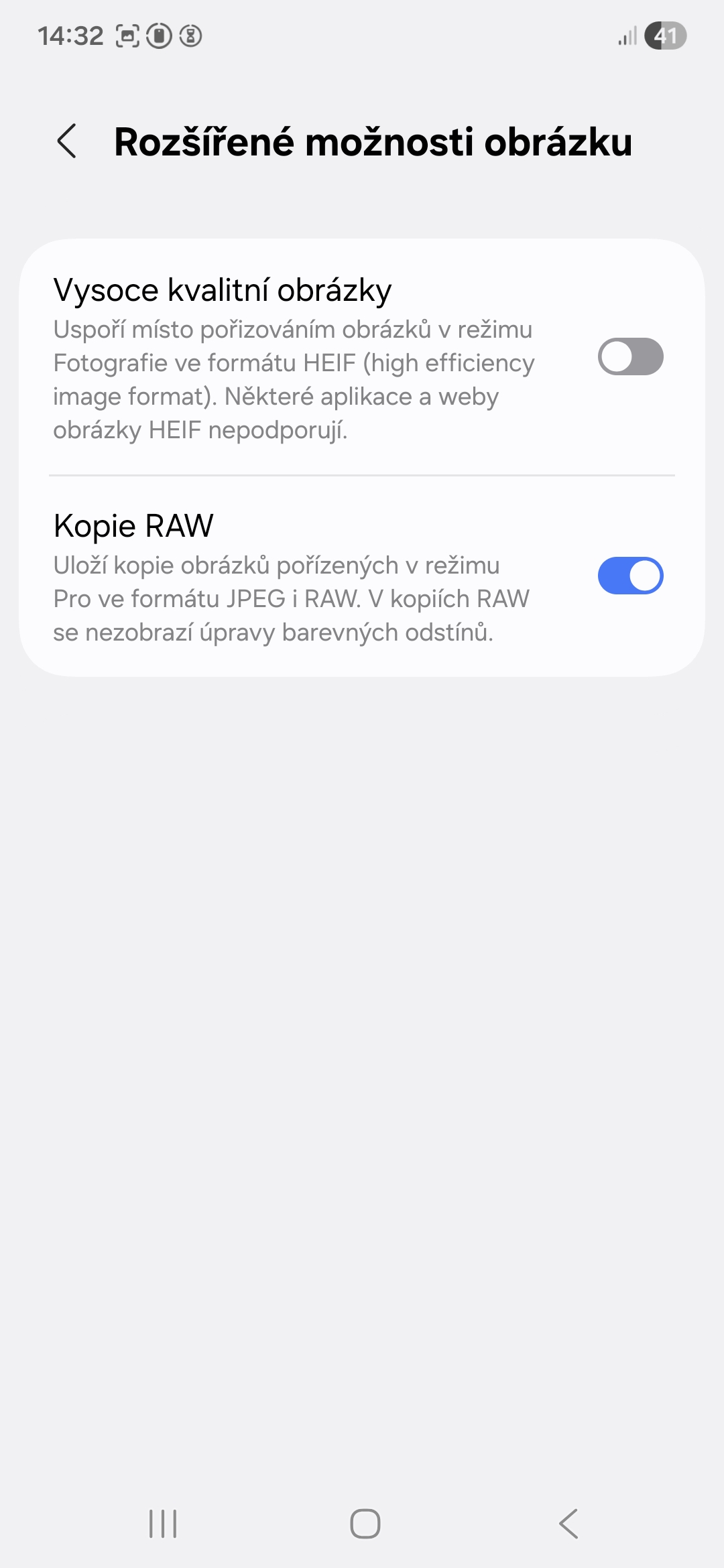 Je třeba poznamenat, že na zařízeních korejského obra se kopie RAW ukládají pouze při fotografování v režimu Pro, který je přístupný z možnosti Další v dolní části fotoaplikace. Ukládají se do složky fotoaparátu spolu s běžnými soubory JPEG. V Galerii mají v pravém horním rohu odznak RAW.