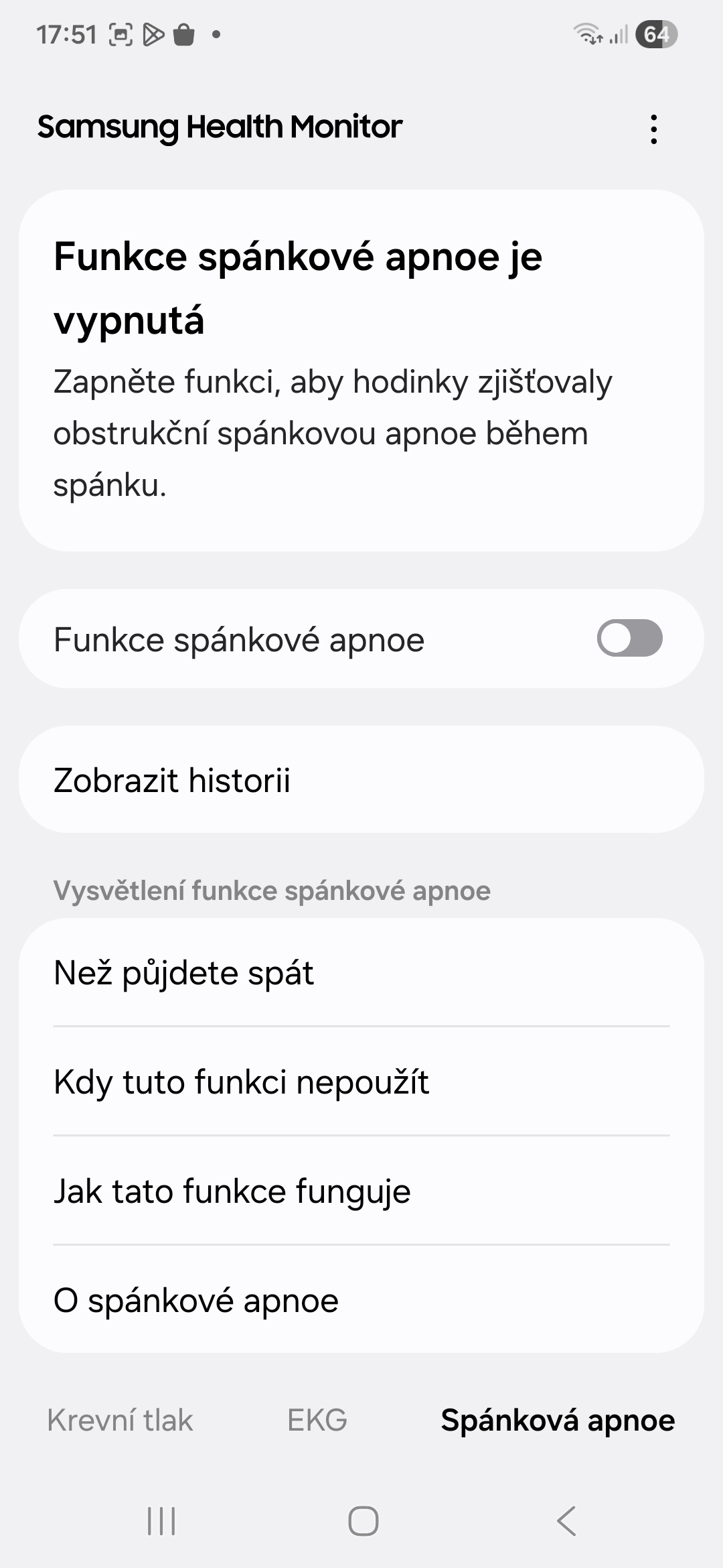 Aby tato velice užitečná zdravotní funkce na vašich Galaxy Watch s Wear OS fungovala, je nutné na vašem telefonu aktualizovat aplikaci Samsung Health Monitor (nebo ji nejprve nainstalovat a poté aktualizovat) a následně funkci zapnout jak na telefonu, tak na hodinkách.
