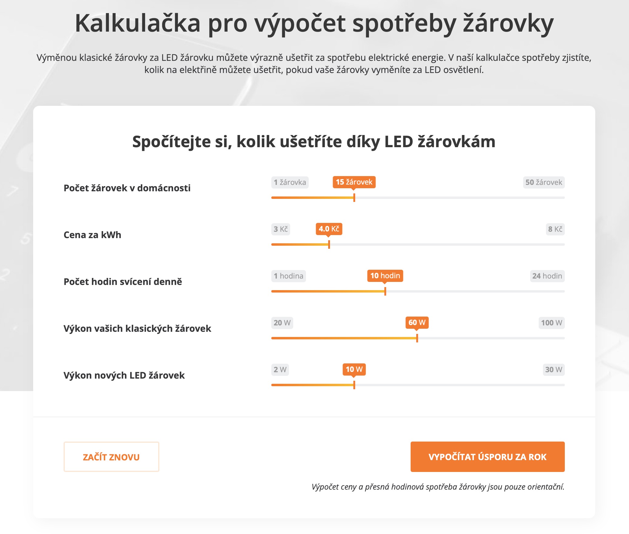 Přemýšlíte, zda se vám vyplatí vyměnit staré klasické žárovky za moderní LED osvětlení? Možná tušíte, že LED žárovkamá nižší spotřebu energie než ta wolframová, ale kolik přesně dokáže ušetřit? T-LED nově spouští kalkulačku spotřeby, která vám během pár vteřin ukáže, jak velký rozdíl přechod na LED skutečně přinese.