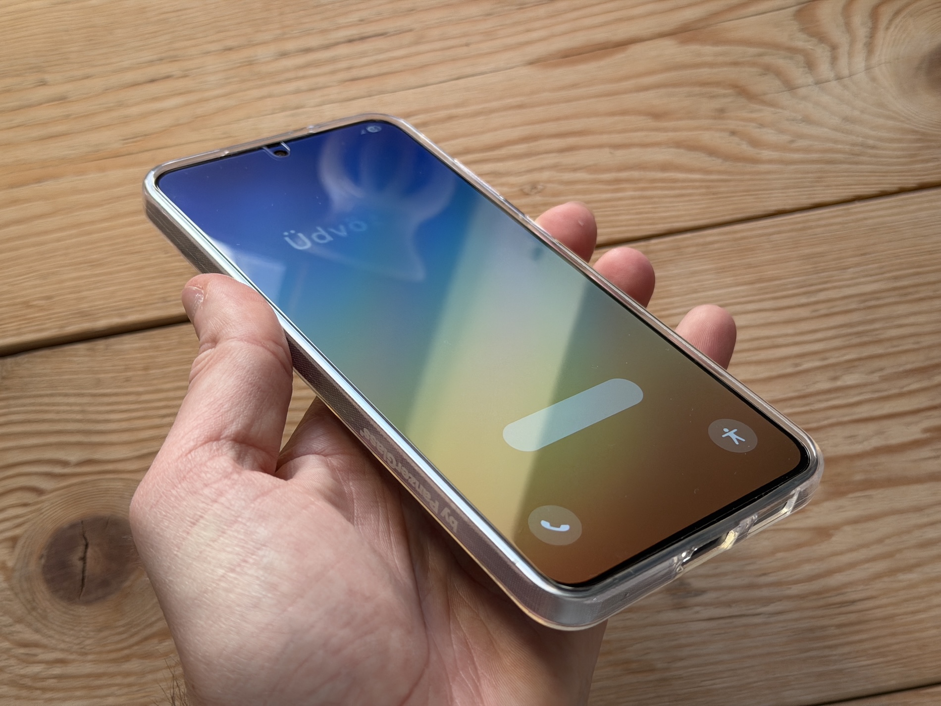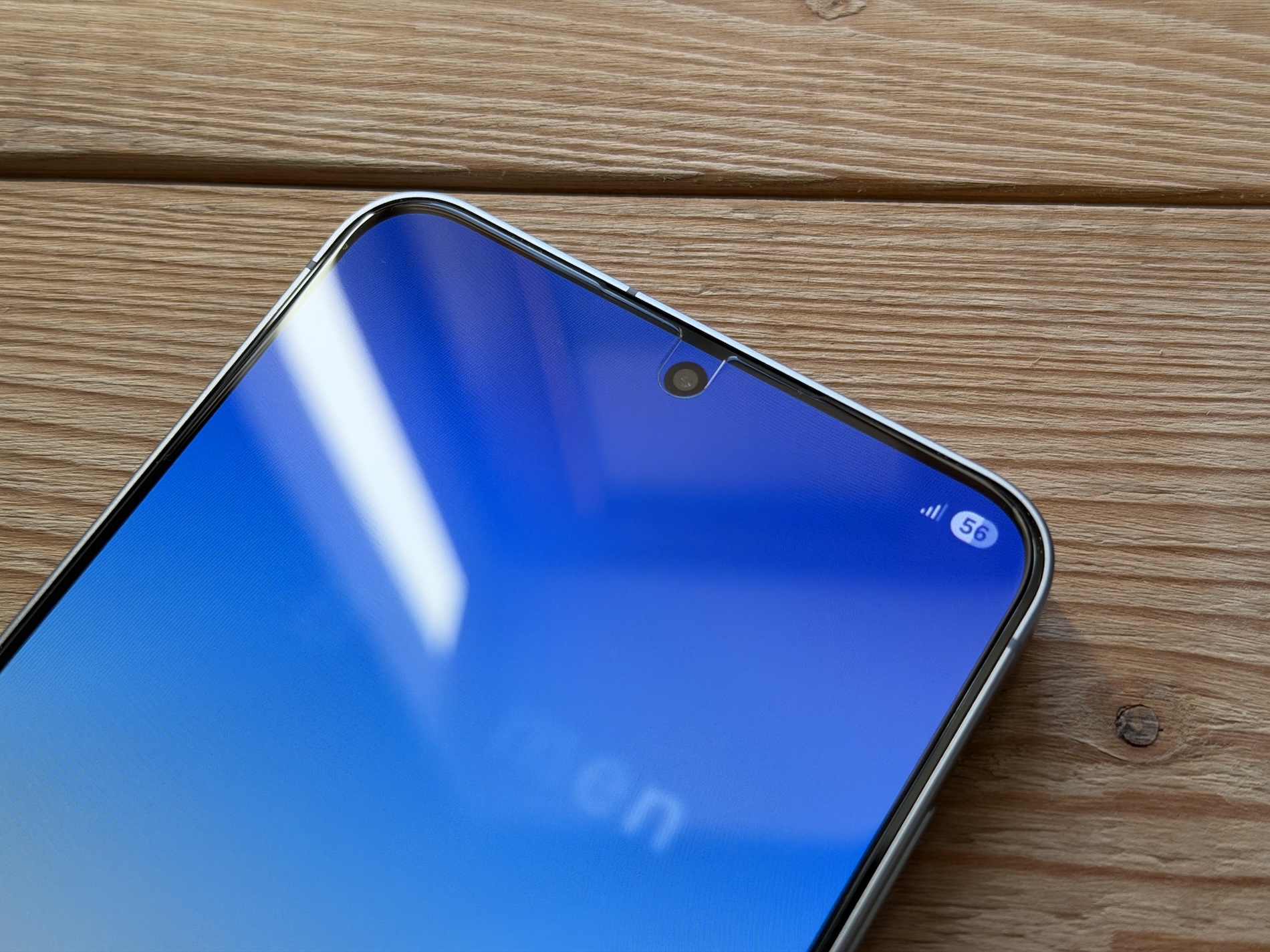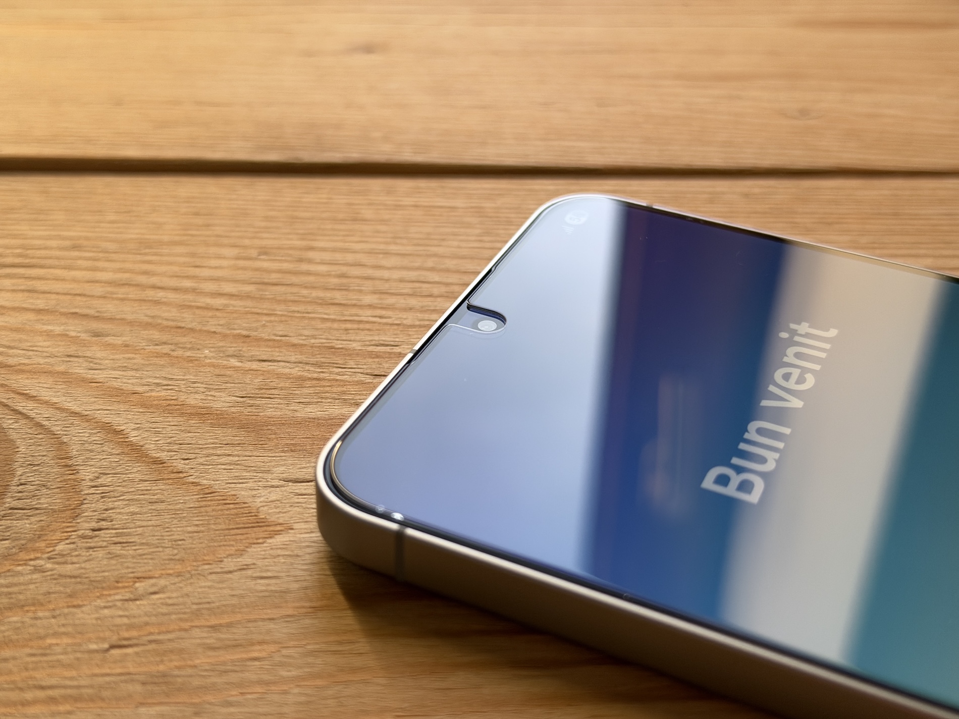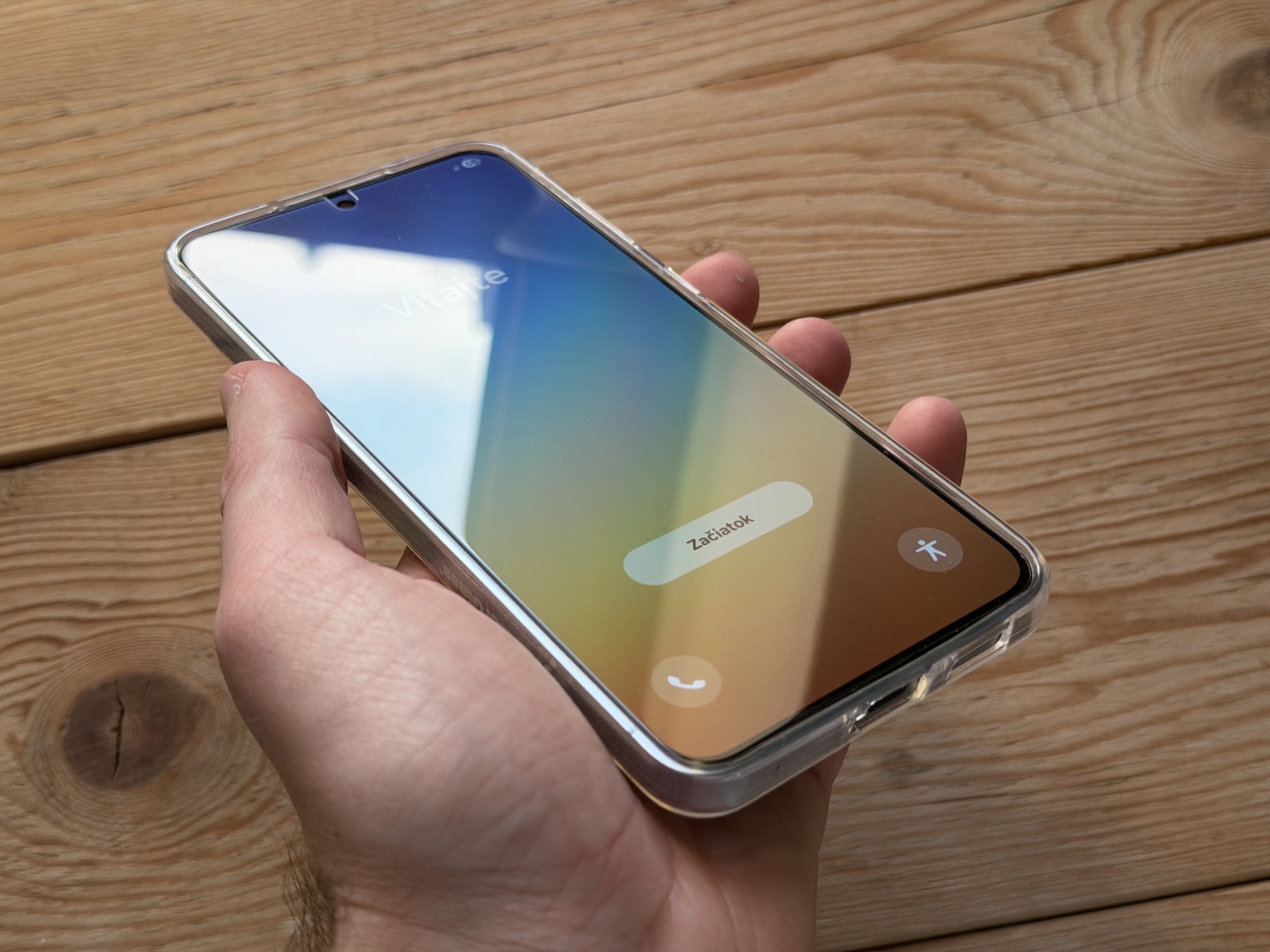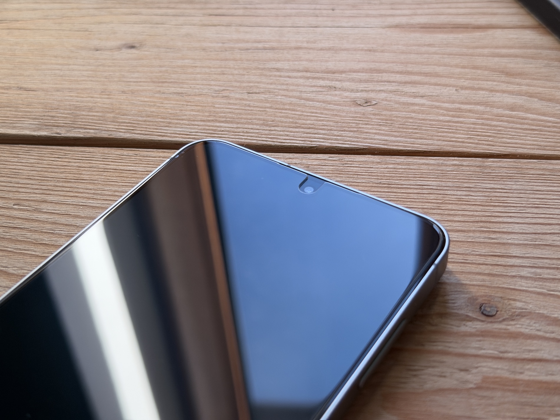 U prostoru čelní kamery je zůstává výřez, aby sklo popřípadě neovlivňovalo kvalitu fotek. Ono by ji tedy neovlivňovalo, je to ale požadavek přímo od Samsungu, který by jinak neudělil společnosti certifikaci. U horní strany si můžete také všimnout i mírného výřezu pro reproduktor. Sklo samozřejmě nijak nezkresluje obsah, je příjemné na dotek, že ho nerozeznáte od toho v telefonu a nevadí mu ani přímý sluneční svit. Korektně rozeznává i otisky prstů.