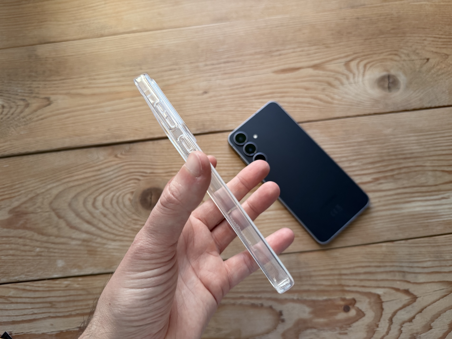 Je to jasná volba pro ochranu a styl telefonu. Necháte s sním totiž vyniknout skutečnou barvu a celkový vzhled vašeho Galaxy S25 FE. Díky měkkému a tenkému designu je toto ochranné pouzdro navíc odolné zevnitř i zvenku. Pouzdro je totiž v ruce příjemně poddajné. Není to vlastně nic, co jsme už s moderními modely Galaxy S na našem webu testovali. Můžete ho i mírně zkroutit, i když na telefonu je pevně usazené a bez jakékoli vůle.