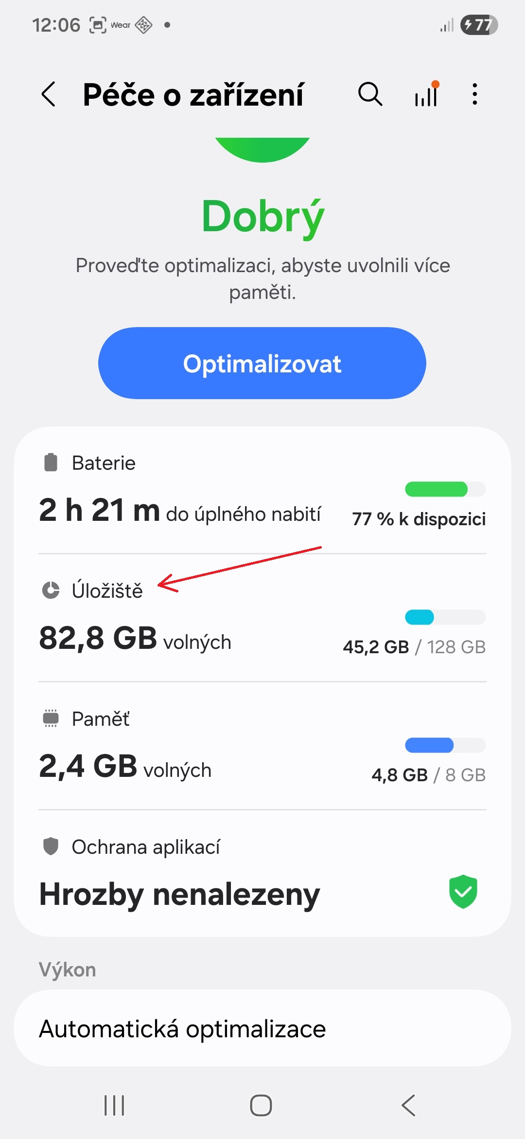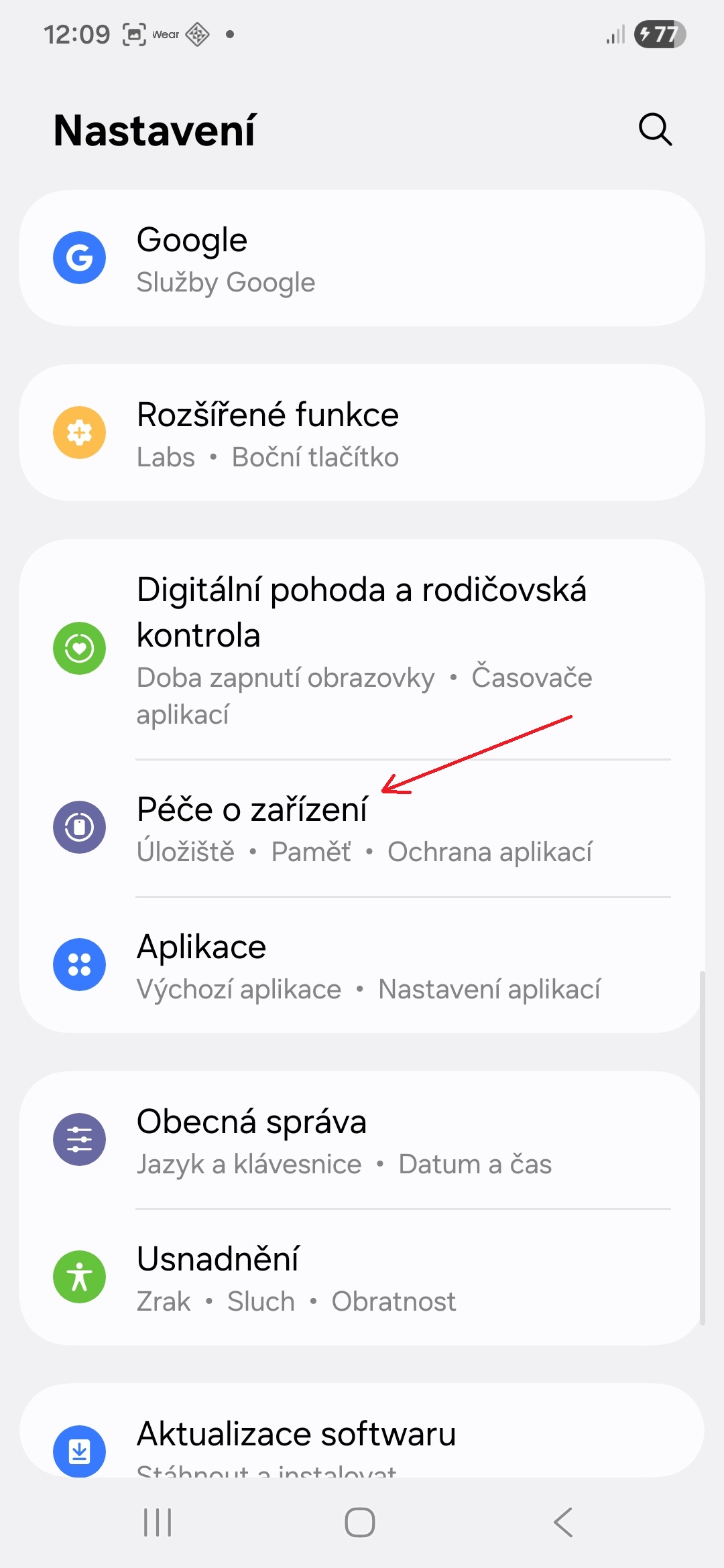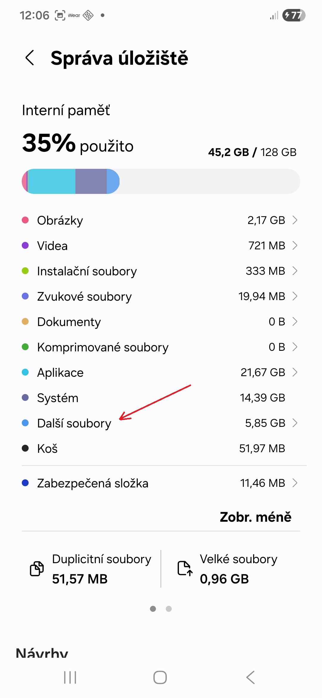 - Nastavení→Péče o zařízení→Úložiště→Zobr. více→Další soubory