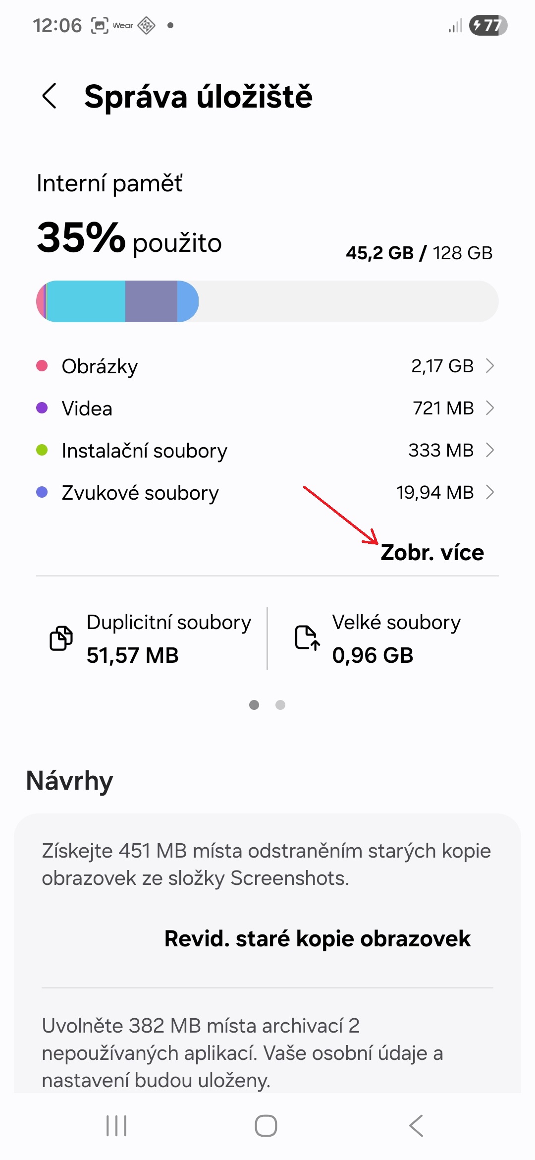 - Moje soubory→Správa úložiště→Zobr. více→Další soubory
