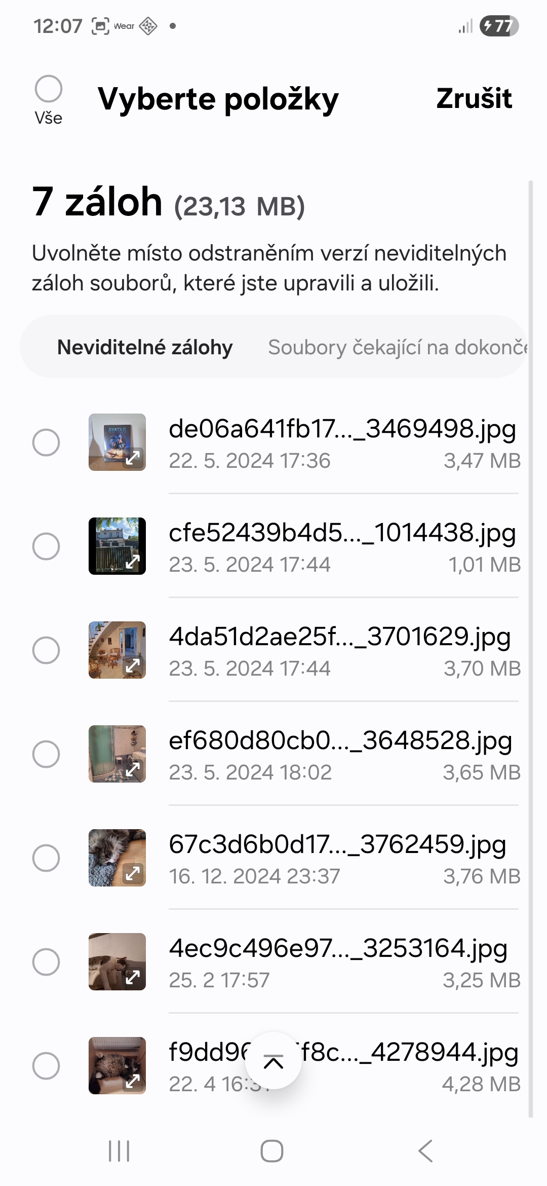 Soubory v kategorii Neviditelné zálohy můžete smazat, v ostatních dvou nikoli, alespoň tedy ne přímo. Místo toho si můžete prohlédnout cestu k nim a na základě toho je v rámci sekce Úložiště aplikace Moje soubory odstranit. Není to úplně nejpohodlnější metoda mazání souborů, ale je to pokrok. Uživatelům Galaxy to dává větší přehled o tom, co jim zabírá místo na úložišti, což ve starších verzích One UI nebylo možné.
