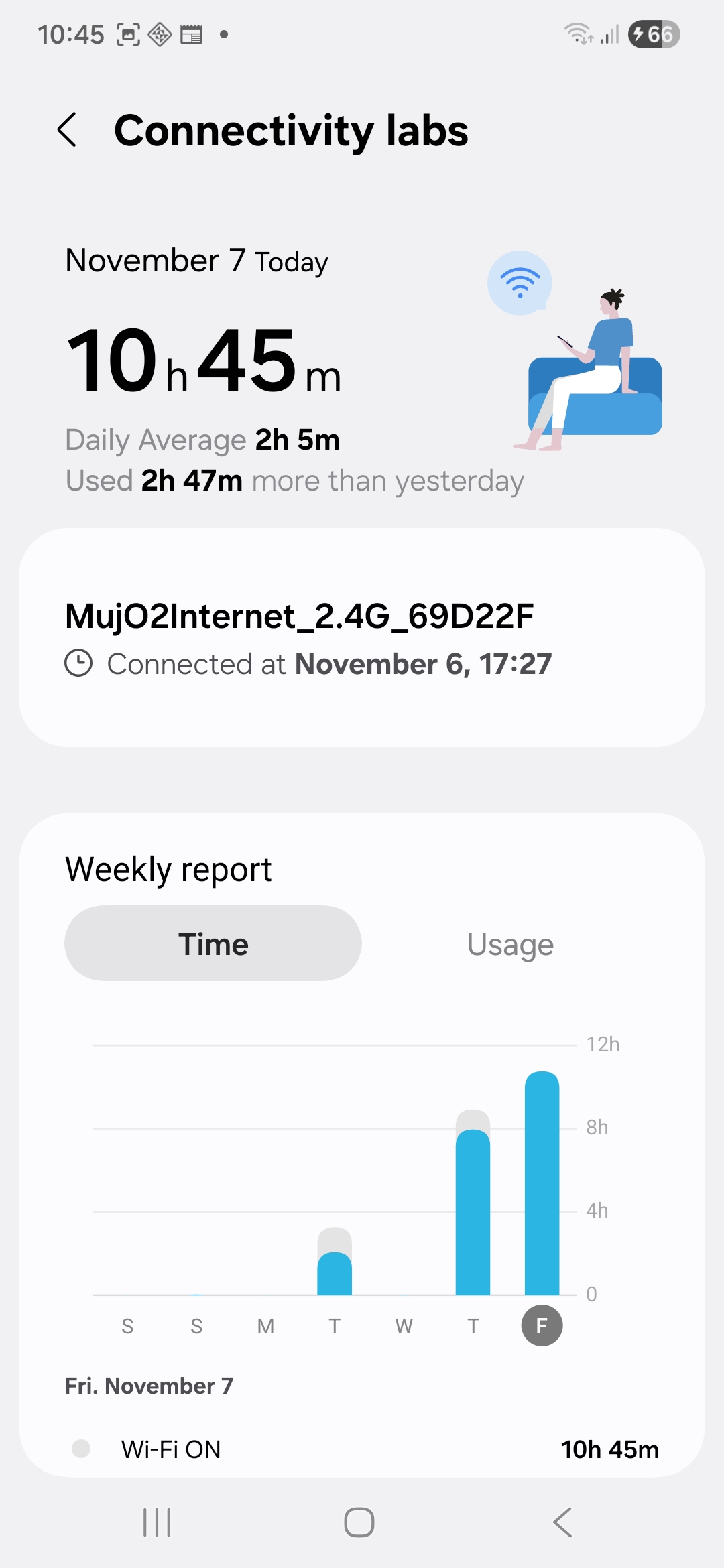 Po otevření nabídky Connectivity Lab uvidíte podrobnosti o vaší připojené Wi-Fi síti. Například týdenní zpráva zobrazuje dobu připojení a využití dat. Hlavní výhodou Connectivity Lab jsou ale její nástroje, které vylepšují vaše připojení.