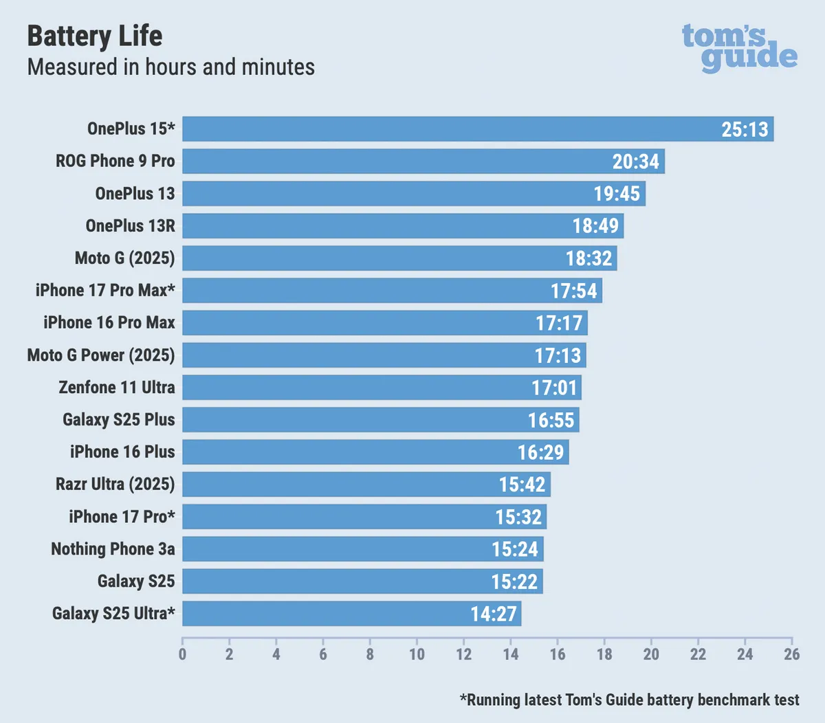 A jak tedy vše dopadlo? Ve stručnosti si zde uveďme, jaká byla výdrž mobilů z testu Tom’s Guide: