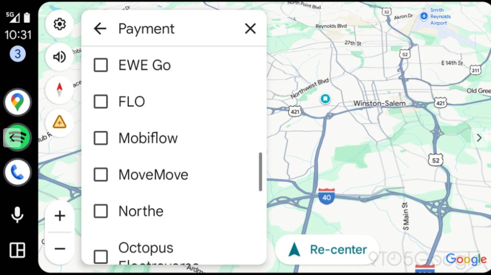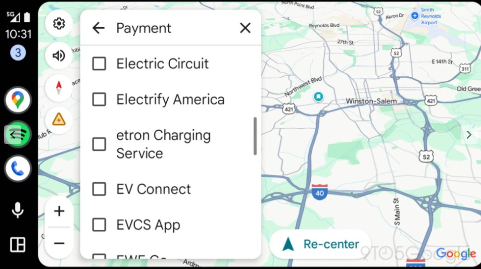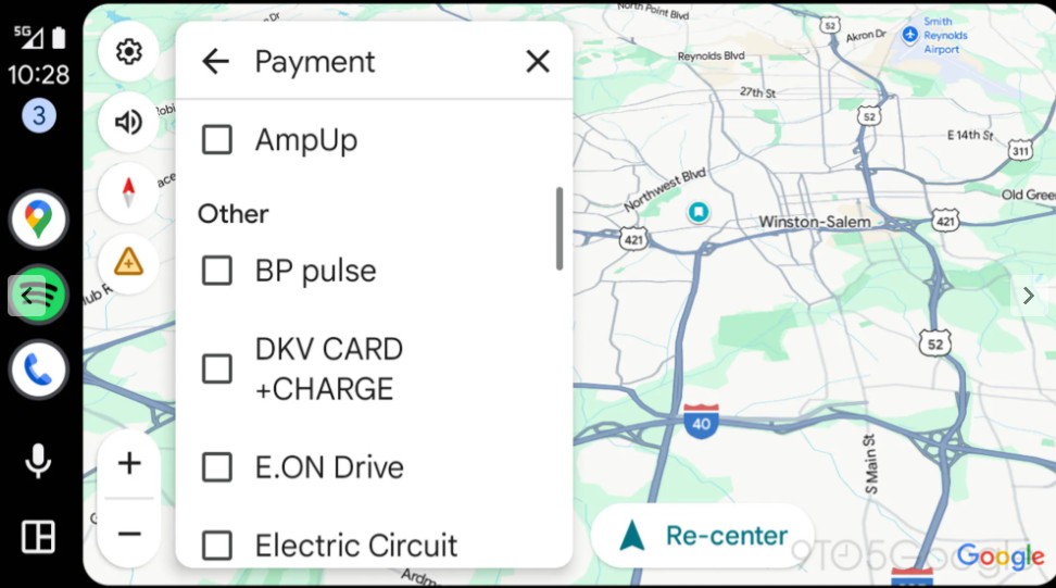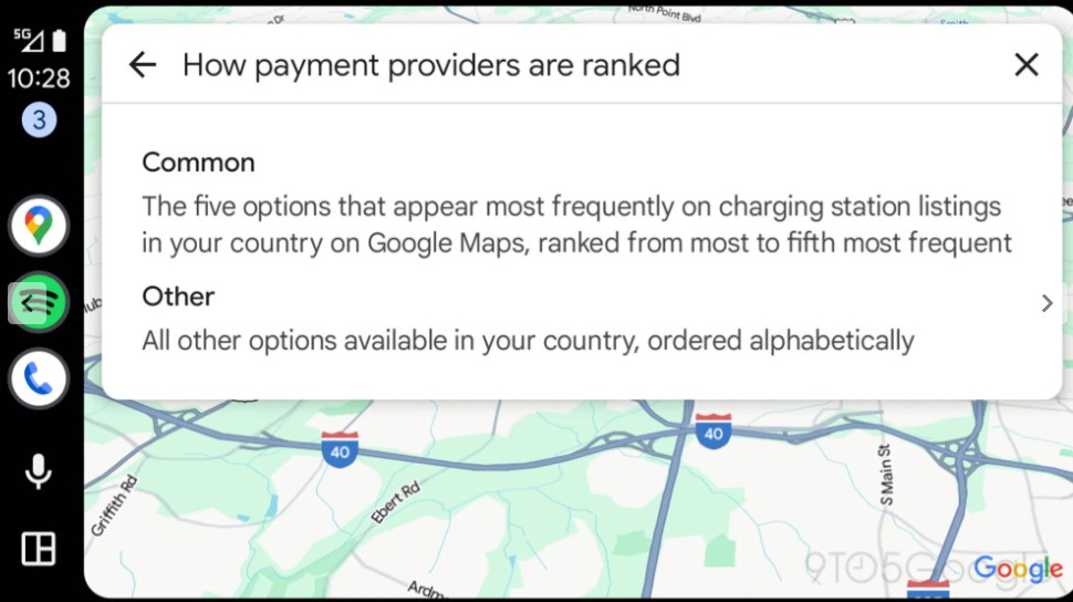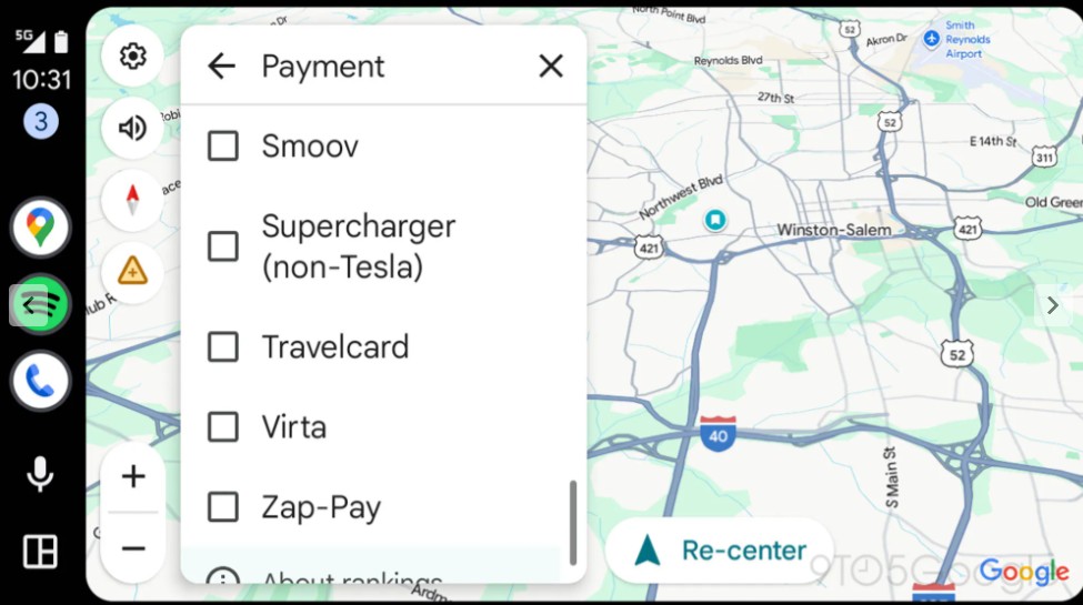 S novými aktualizacemi Google pracuje na zefektivnění tohoto procesu. V aktuální betaverzi Android Auto 15.7.654604 se podle webu 9to5Google objevuje nové nastavení „EV payment filters“ (filtry plateb pro elektromobily), které umožňuje řidičům elektrických vozů nastavit preferované způsoby platby za nabíjecí stanice před zahájením vyhledávání. Nabídka obsahuje filtry pro následující způsoby platby:
