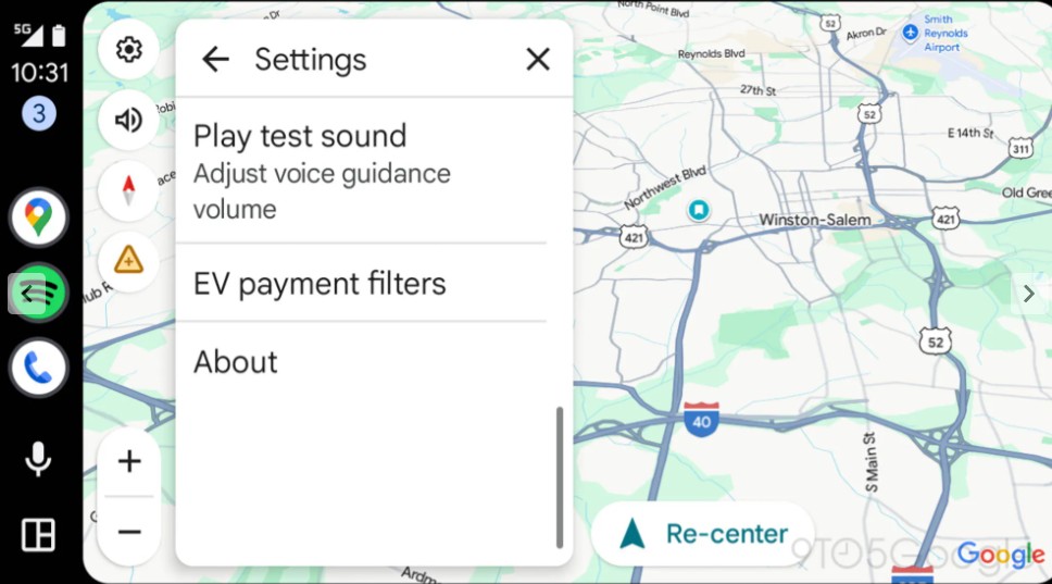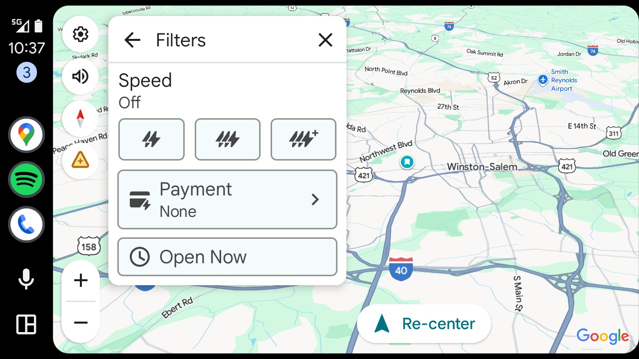 Google také pracuje na trvalém filtru pro nabíjecí stanice podle rychlosti prostřednictvím nastavení Map. Toto filtrování sice není v nejnovější betě Android Auto dostupné, webu Android Authority se je však podařilo ručně zapnout. Řidiči si budou moci vybrat nabíjecí stanice s rychlostmi, včetně „pomalého nabíjení“ (až 49 kW) nebo „rychlého nabíjení“ (50 kW nebo vyšší), a zároveň budou mít kontrolu nad konkrétní rychlostí nabíjení v krocích „až 9 kW“, „10 až 49 kW“, „50 až 149 kW“, „150 až 349 kW“ a „350 kW a rychlejší“. Zřejmě si budou moci vybrat více než jednu možnost.