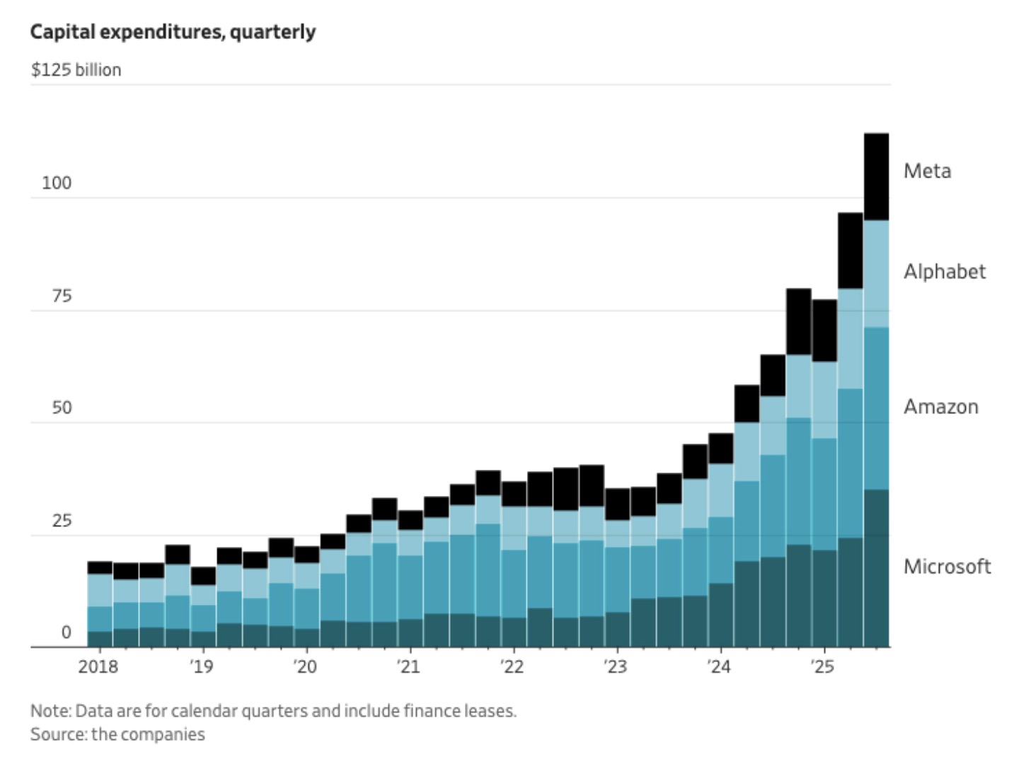Investice velkých technologických firem do AI. Zdroj: WSJ