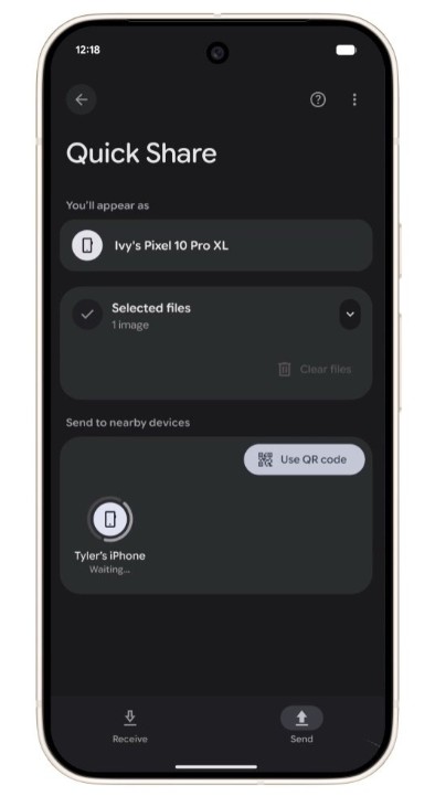 Funkce Quick Share získala podporu AirDrop, momentálně ale funguje pouze na telefonech řady Pixel 10. Ostatní androidová zařízení by se podpory měla dočkat prostřednictvím aktualizace Quick Share. Zařízení Galaxy a jiné telefony a tablety s Androidem tak budou moci odesílat soubory na iPhony, iPady a Macy a přijímat je z nich, a to bez nutnosti instalace jakékoli aplikace třetí strany.