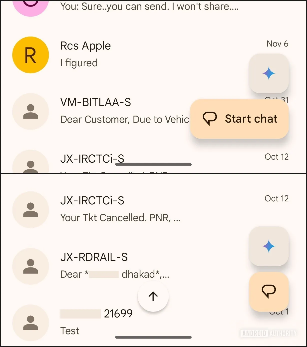Třetí novinkou, která se do Zpráv Google chystá, je hlubší integrace Gemini. Což není nijak překvapivé, protože Google vkládá Gemini kamkoliv to lze. Naposledy to udělal třeba s vyhledávacím políčkem pro zadávání URL adresy v prohlížeči Chrome na Androidu, kde je nyní dostupný model Nano Banana. Ve Zprávách Google už Gemini najdete, ale dostane větší plovoucí tlačítko pro spuštění – jeho velikost by dokonce měla dosahovat velikosti tlačítka pro konverzace.