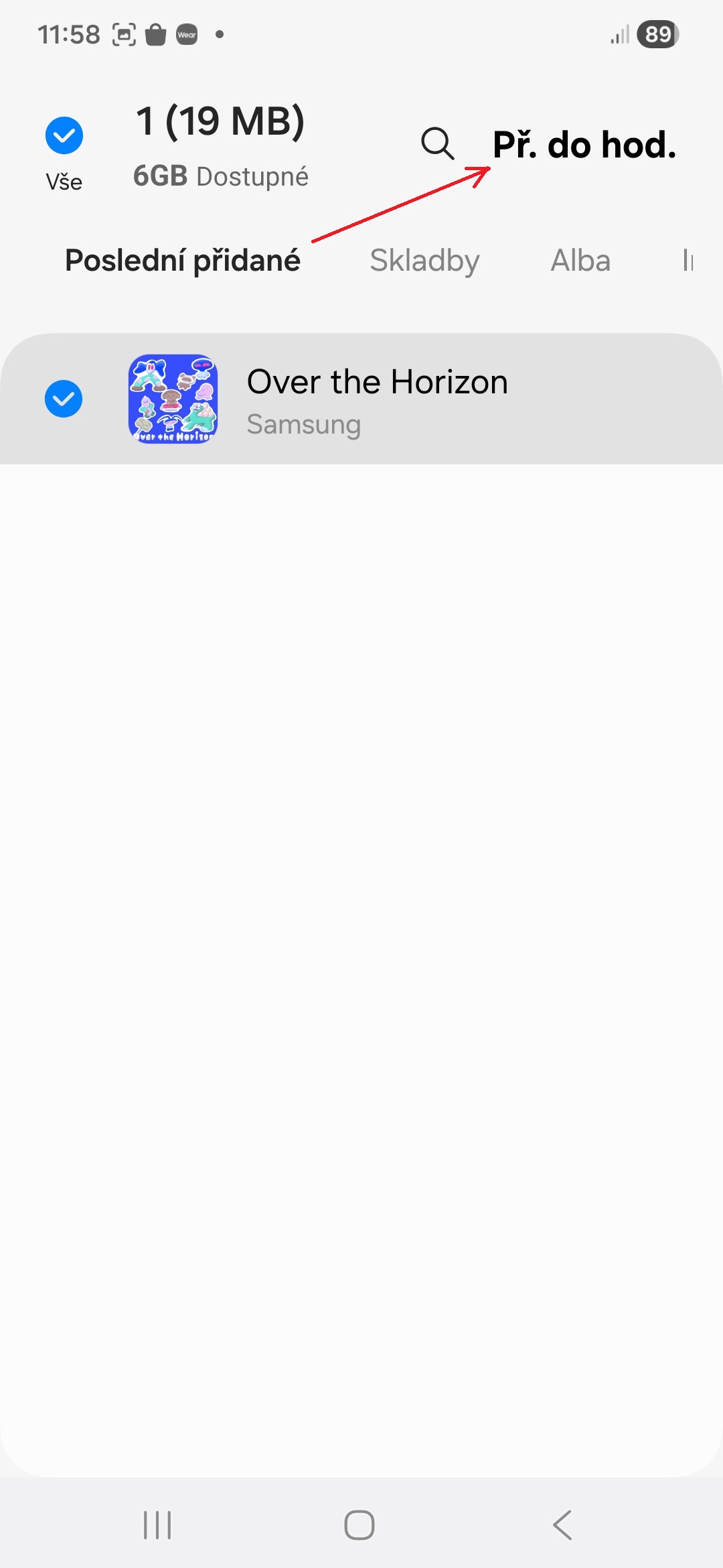 - Vyberte, které skladby chcete do hodinek přidat, a klepněte na tlačítko Př. do hod.