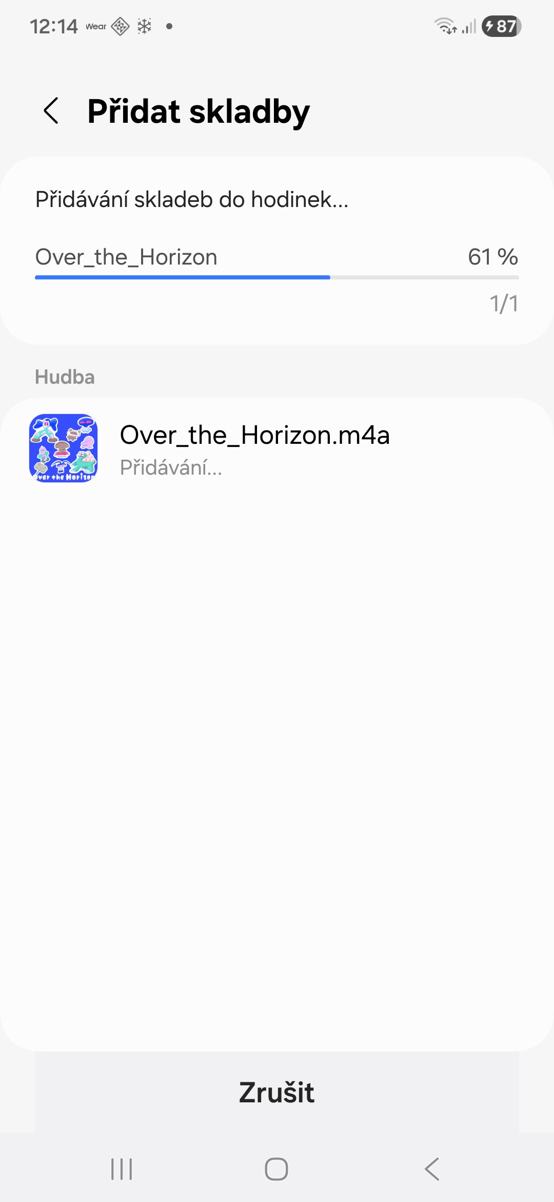 Pokud chcete přenést zvukové soubory uložené lokálně v telefonu do Galaxy Watch, proveďte následující kroky: