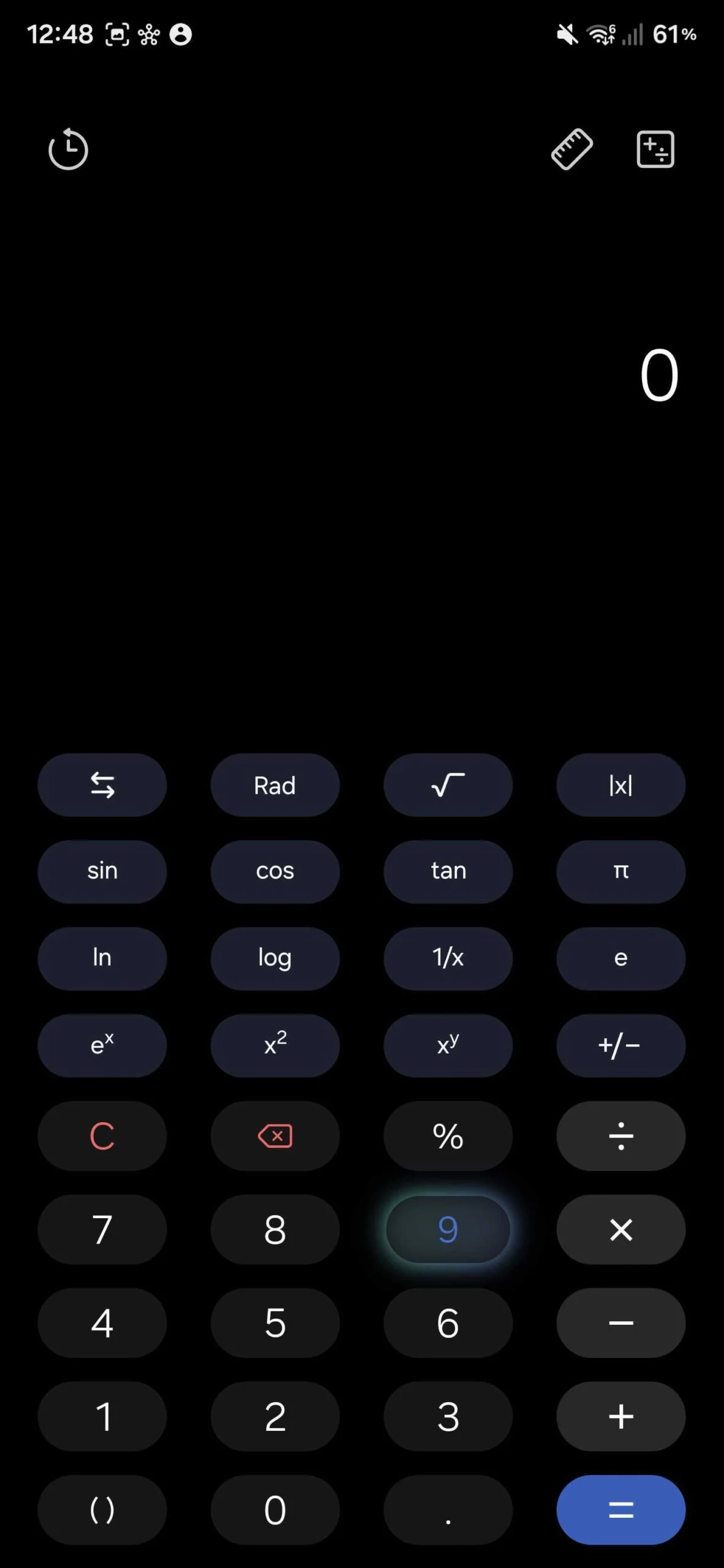 Kromě toho, při stisknutí tlačítka se kolem něj zobrazí zářivá barva, vytvářející efekt aury. Jeho barva se dynamicky mění v závislosti na aktuálně používaném režimu (např. standardním, vědeckém) a také podle toho, zda používáte světlý, nebo tmavý režim.
