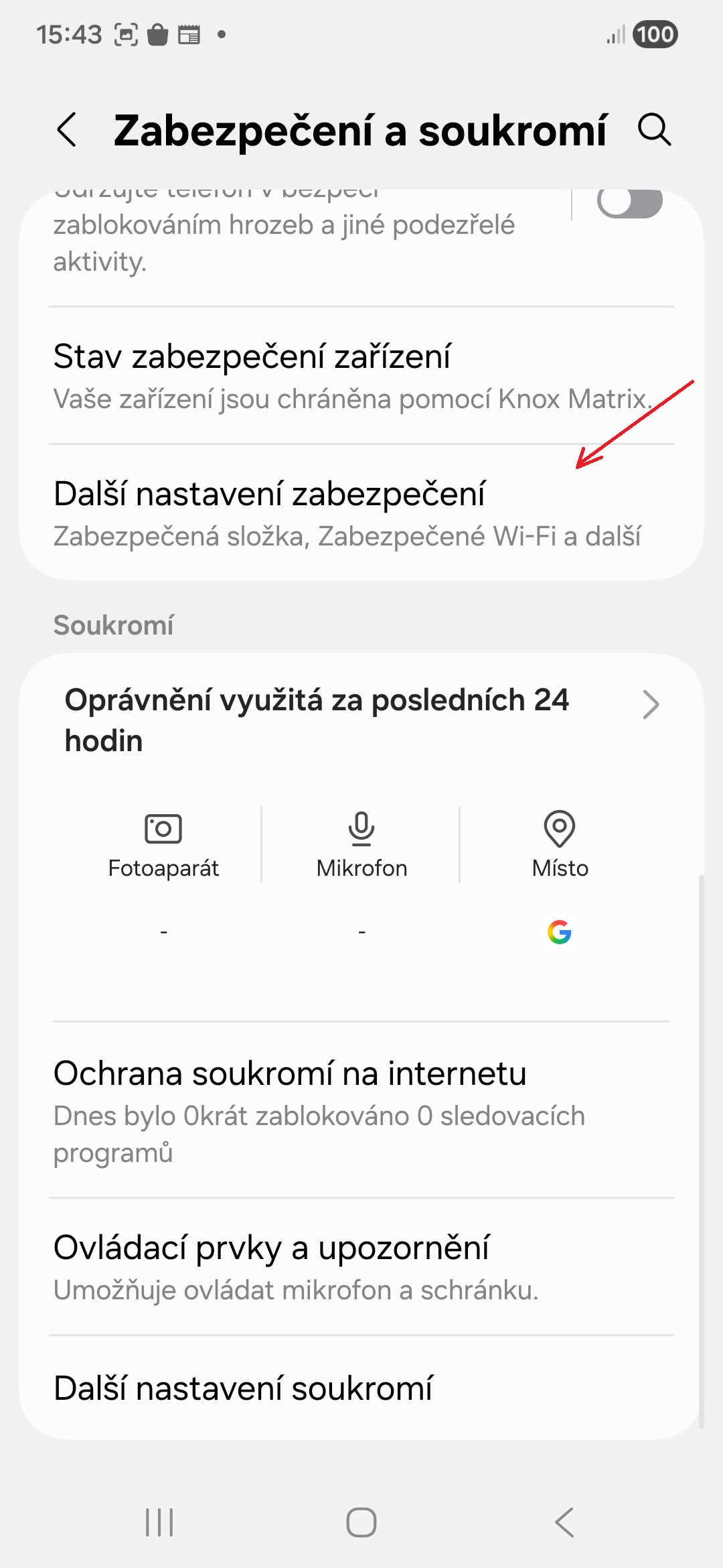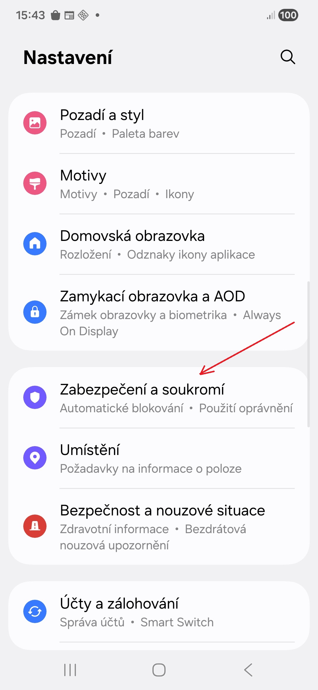- Klepněte na nabídku Zabezpečení a soukromí.
