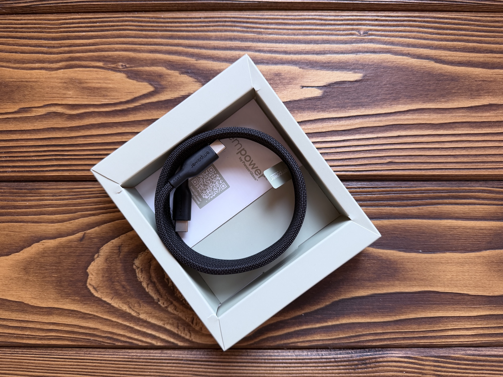 Na první pohled je jasné, že EmPower není obyčejný kabel. Díky své magnetické konstrukci se po použití sám složí do kompaktního tvaru, což eliminuje zamotávání a šetří vám množství nervů. Magnety jsou rozmístěny po celé délce kabelu, takže segmenty drží pevně u sebe. Výhodu to má, i pokud má váš stůl kovové nohy a zásuvku máte někde dole u země.