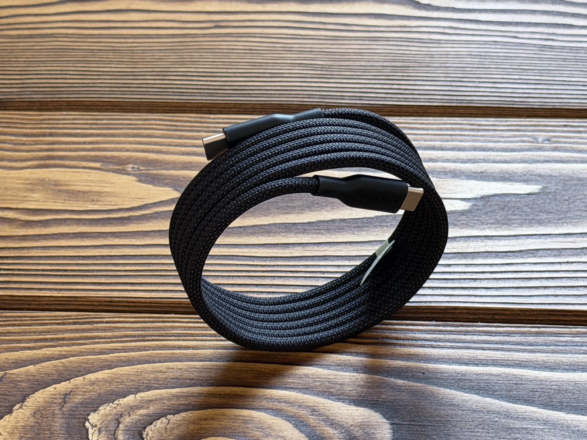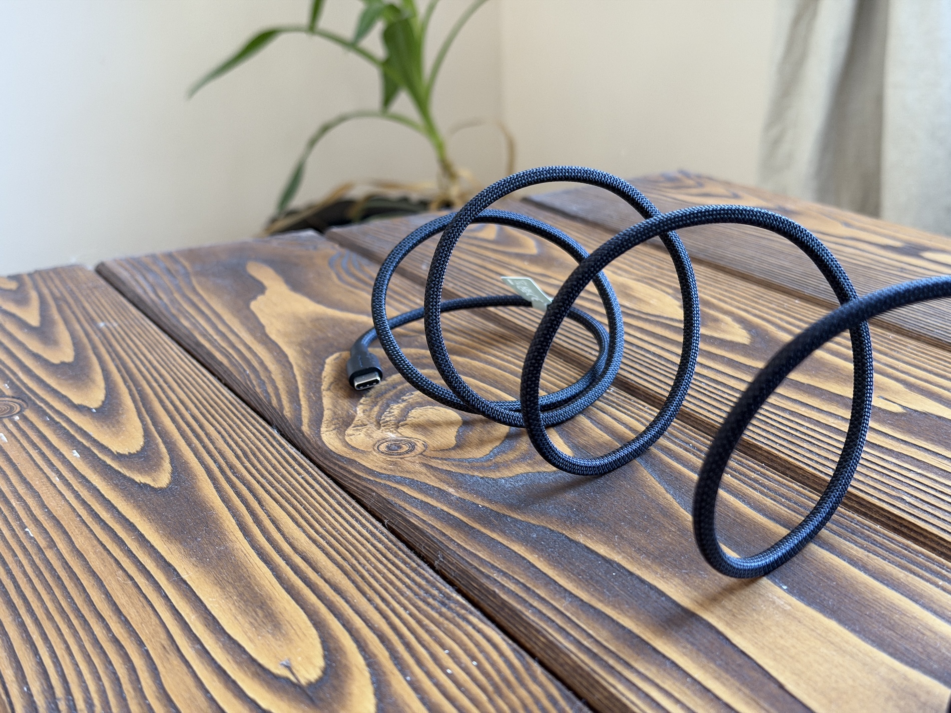 Kabel sám má délku 1,5 metru, což je ideální pro pohodlné používání doma i v kanceláři. Díky magnetům je ale přece jen trošku těžší. Na časté přenášení se jistě hodí jiné řešení. Materiály kombinují odolné textilní opletení a měkké silikonové jádro, což zajišťuje příjemný pocit při manipulaci a vysokou odolnost. Výrobce tu dokonce garantuje testování na 3 000 ohybů, což potvrzuje dlouhou životnost.