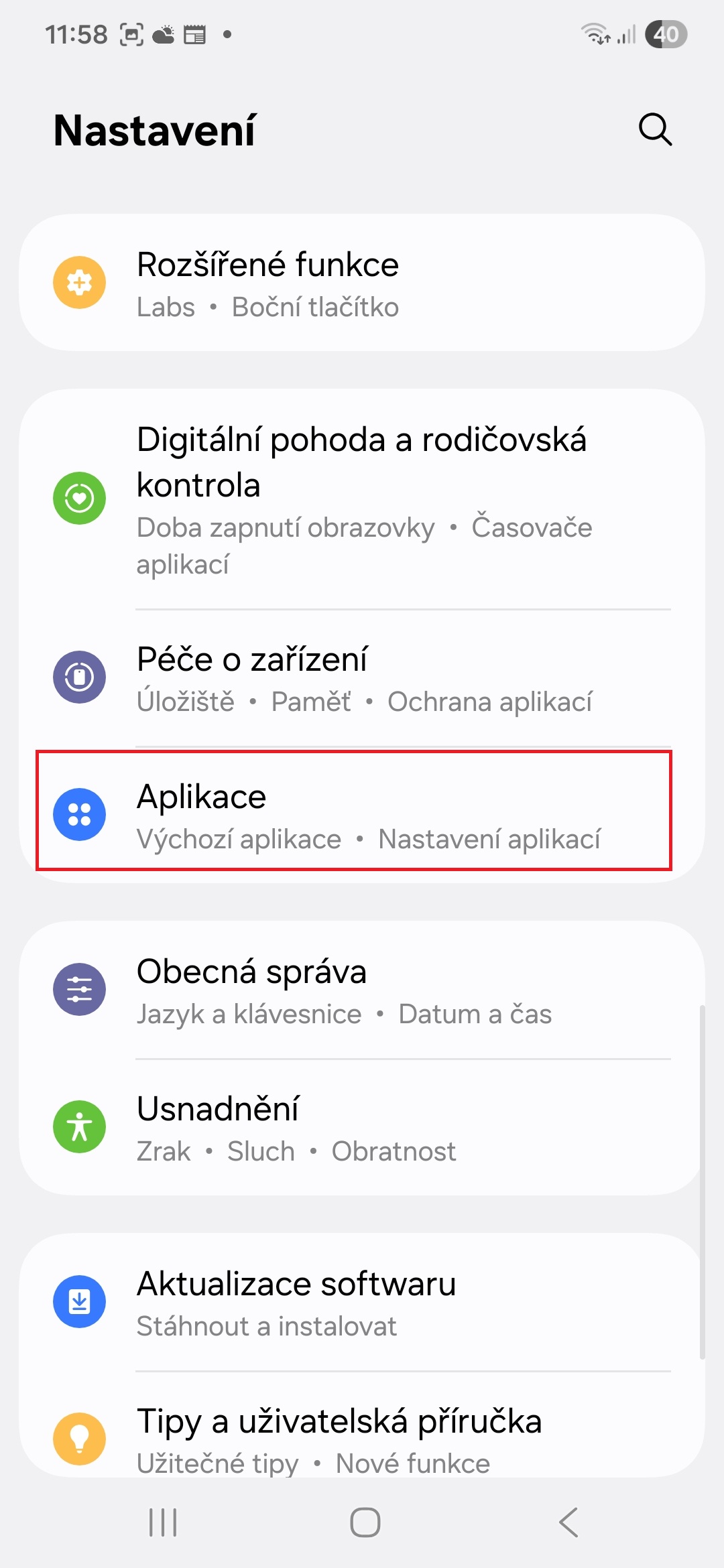 - Na svém telefonu jděte do Nastavení→Aplikace.