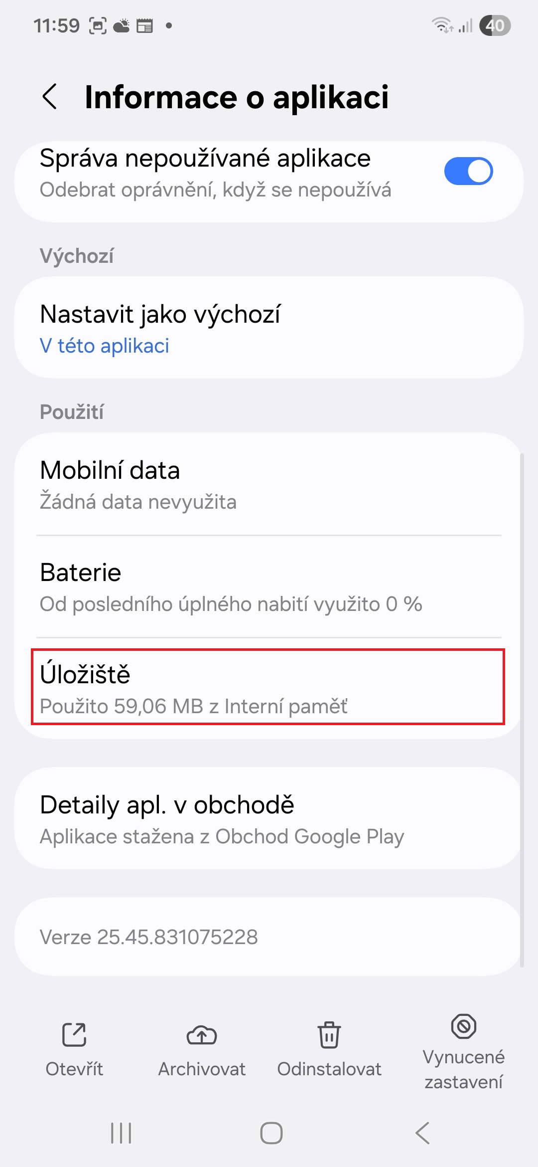 - Klepněte na možnost Úložiště.