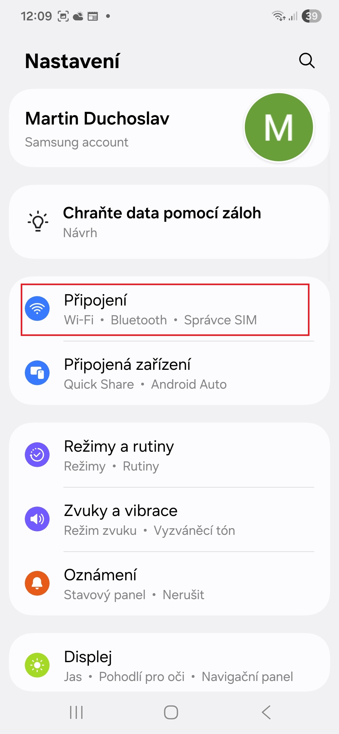 - Jděte do Nastavení→Připojení.