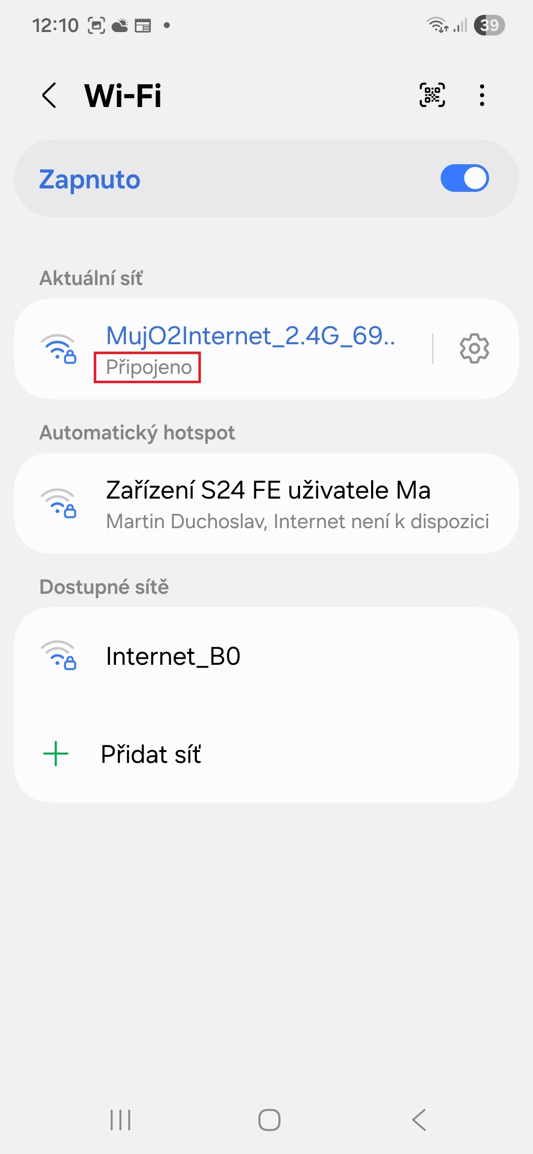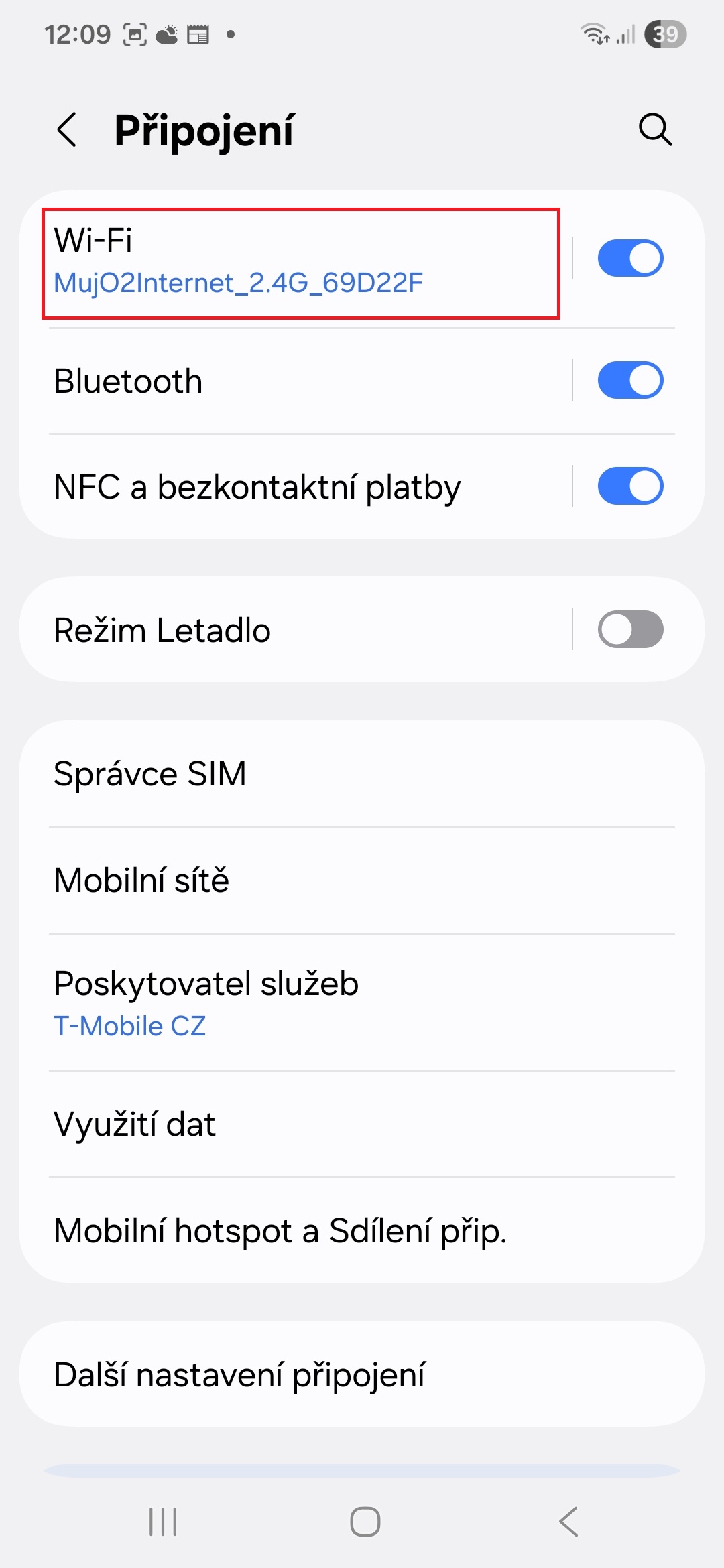 Pokud chcete zajistit, aby vaše digitální platby proběhly bez problémů, používejte Peněženku, jen když vám fungují mobilní data nebo se nacházíte na místě s dostupností Wi-Fi sítí. Připojení k Wi-Fi zkontrolujete takto: