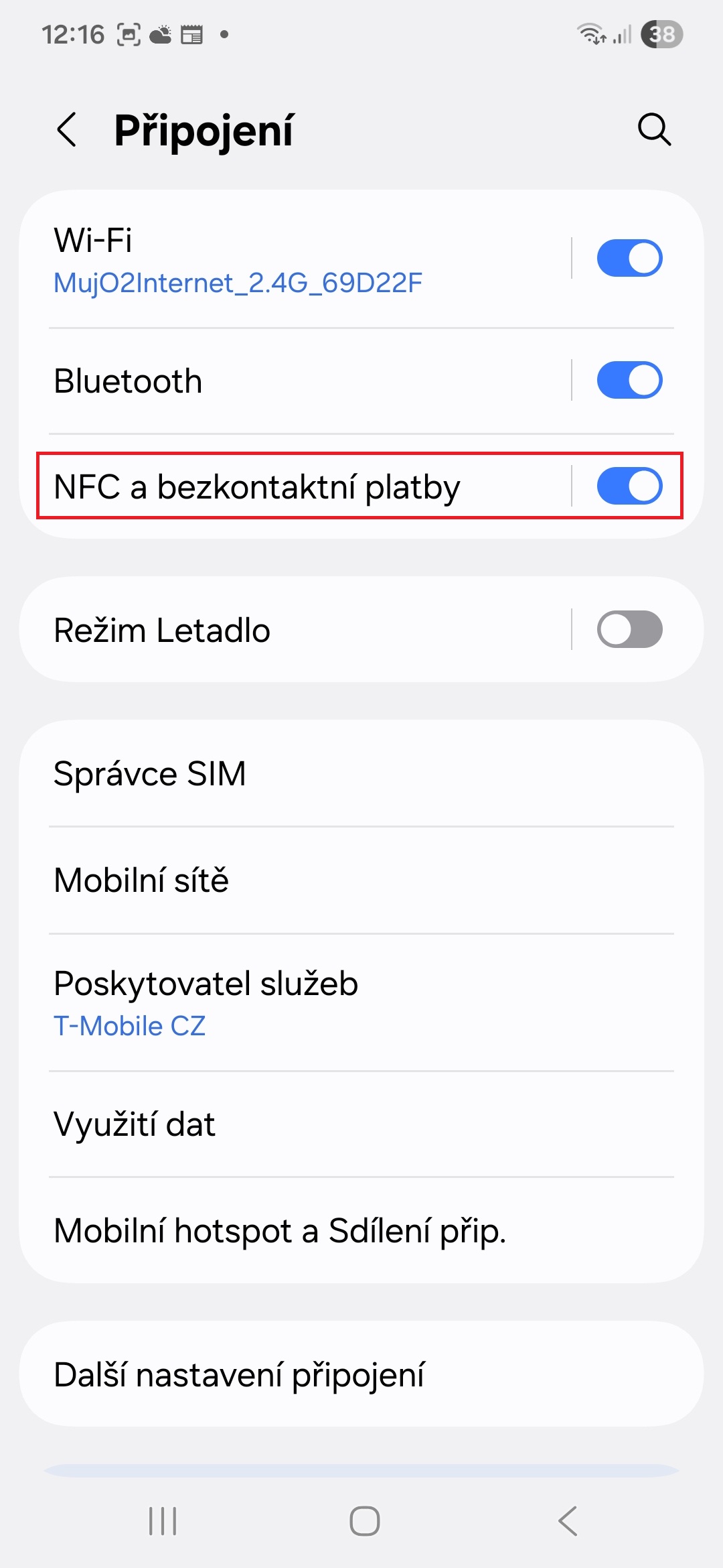 - Klepněte na možnost NFC a bezkontaktní platby.