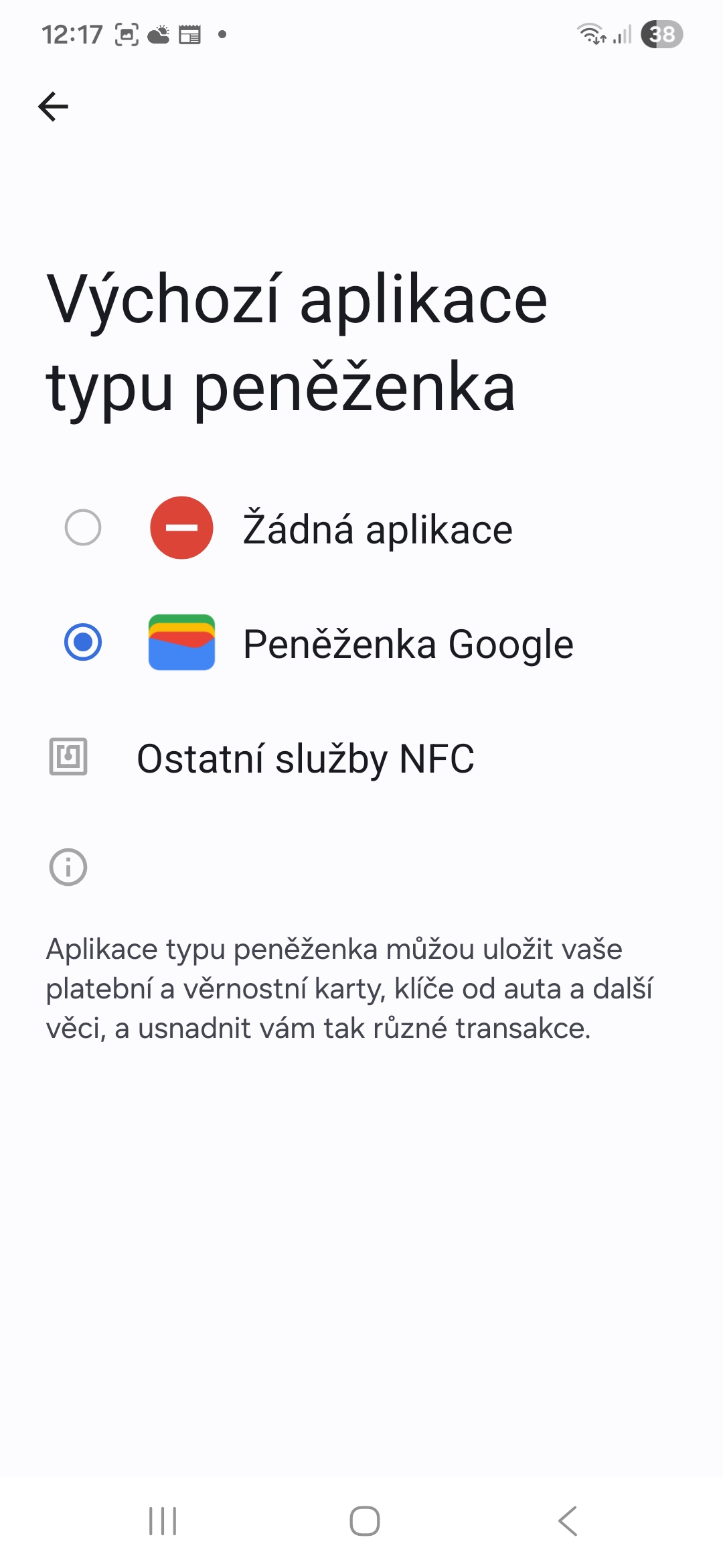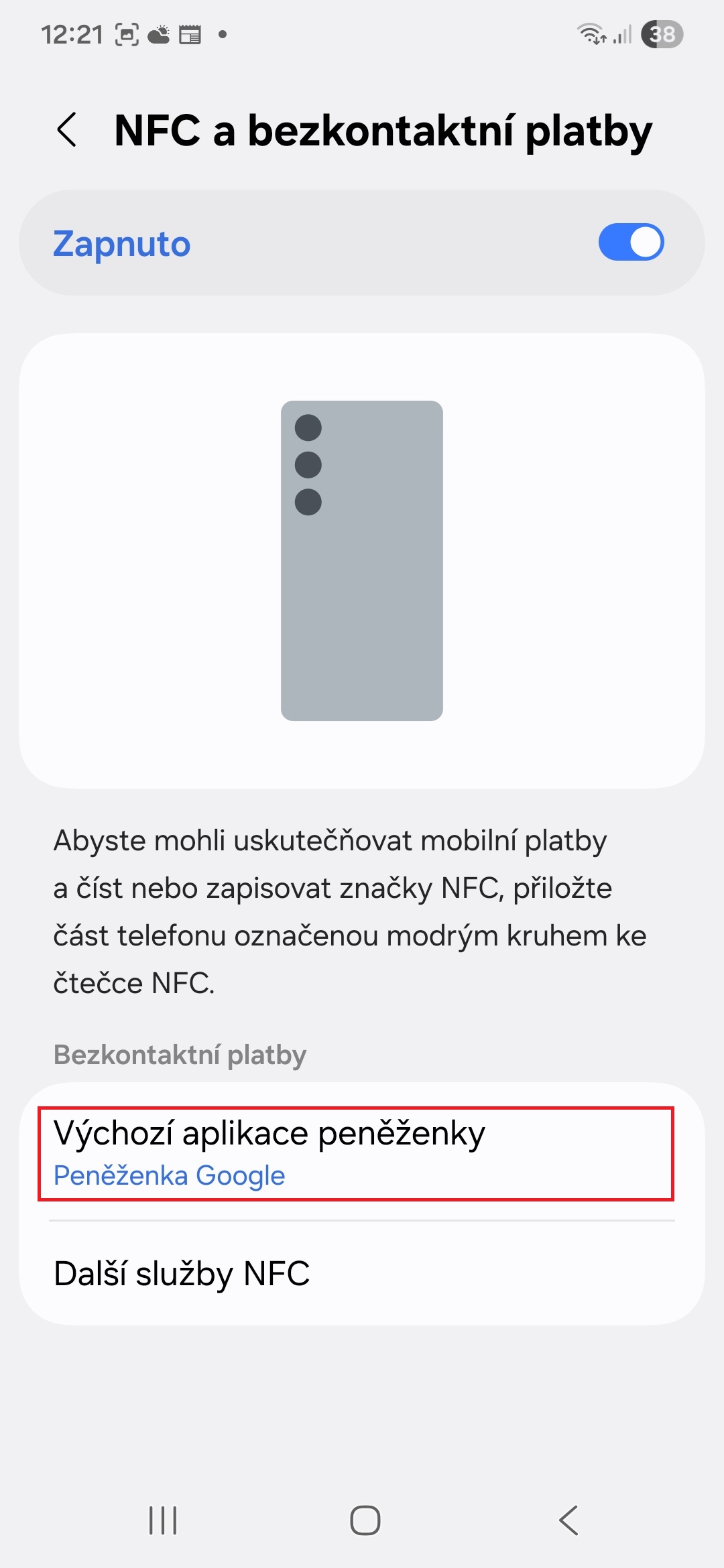 Nastavte Peněženku jako výchozí aplikaci NFC