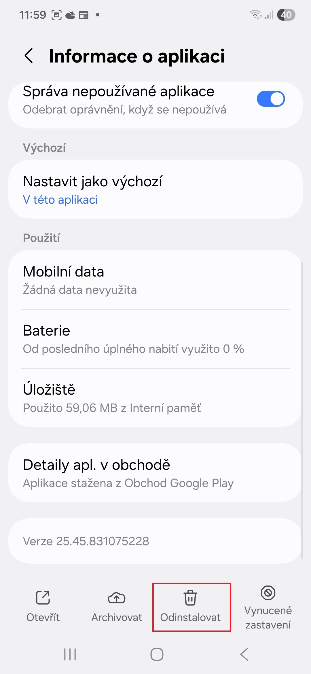 Odinstalujte a znovu nainstalujte aplikaci