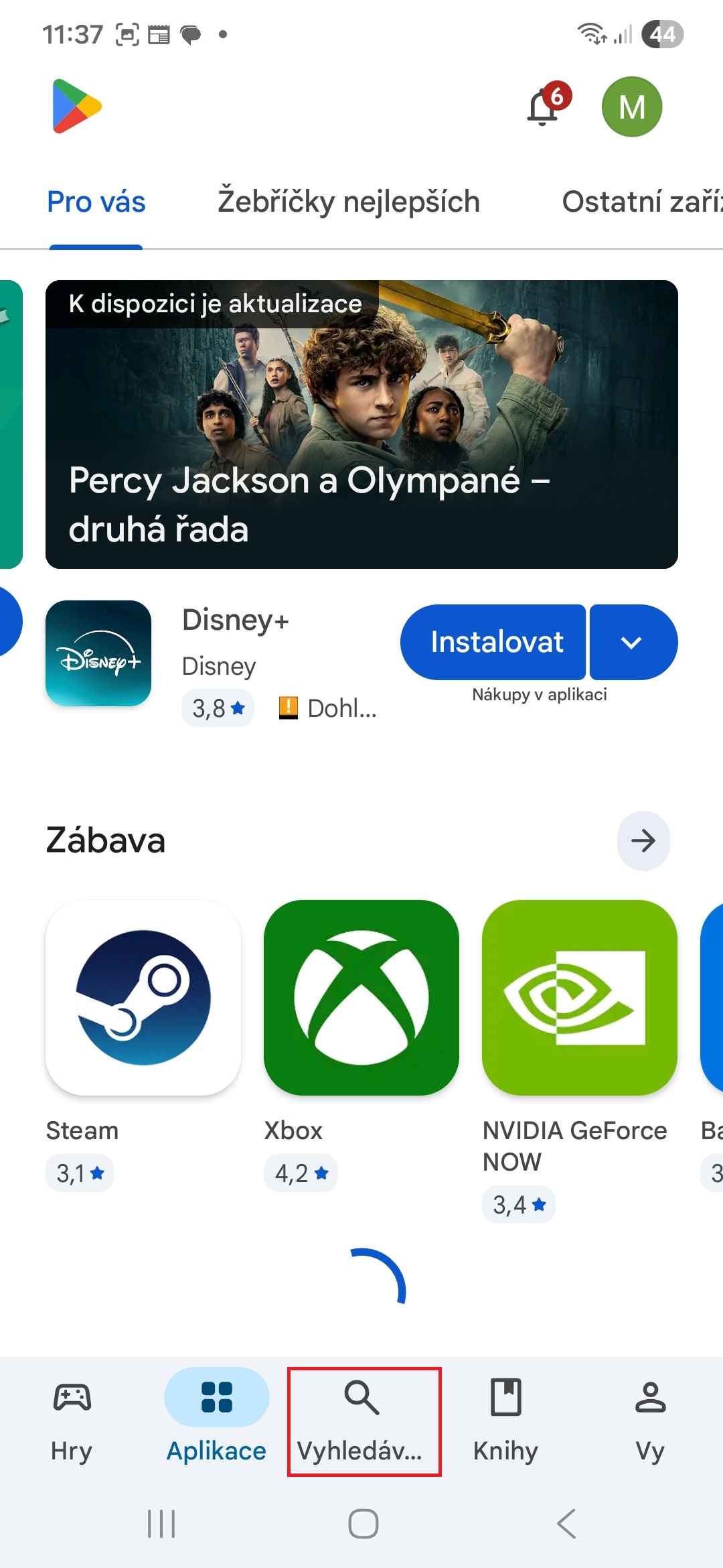 - Pokud je pro ni k dispozici update, klepněte na tlačítko Aktualizovat.