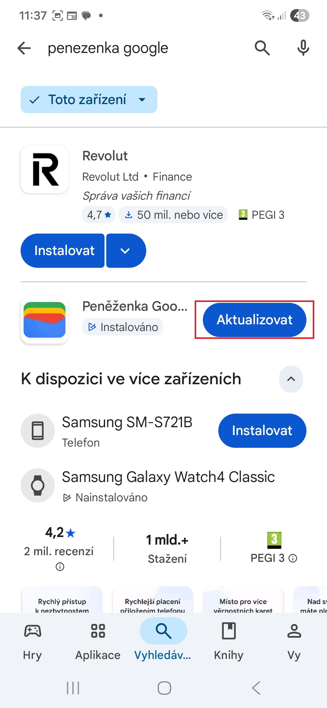 - Vyhledejte aplikaci Peněženka Google.