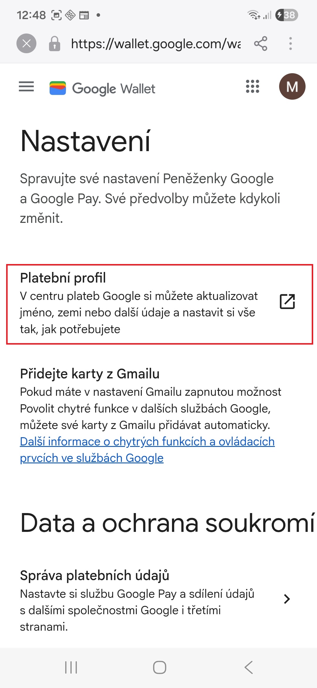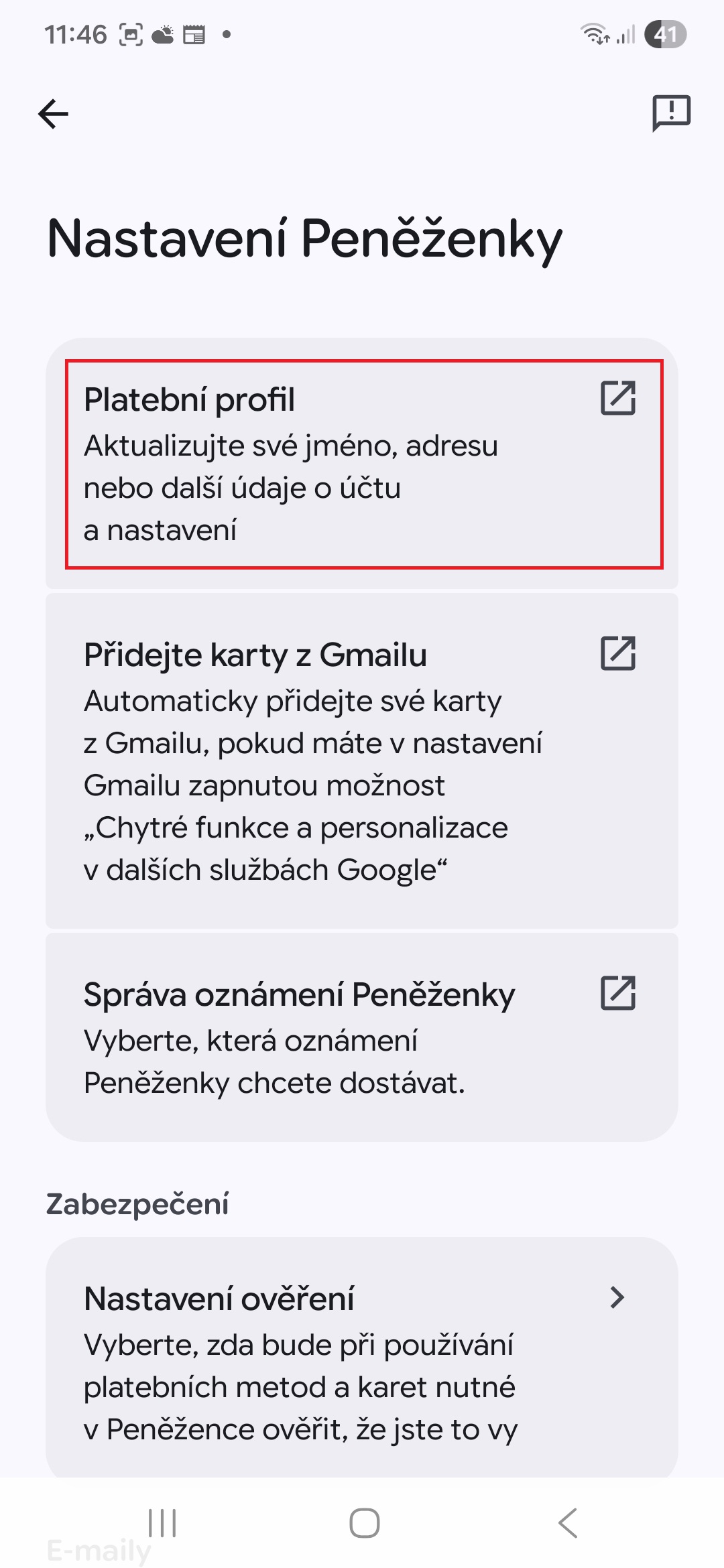 - Klepněte na „Platební profil“.